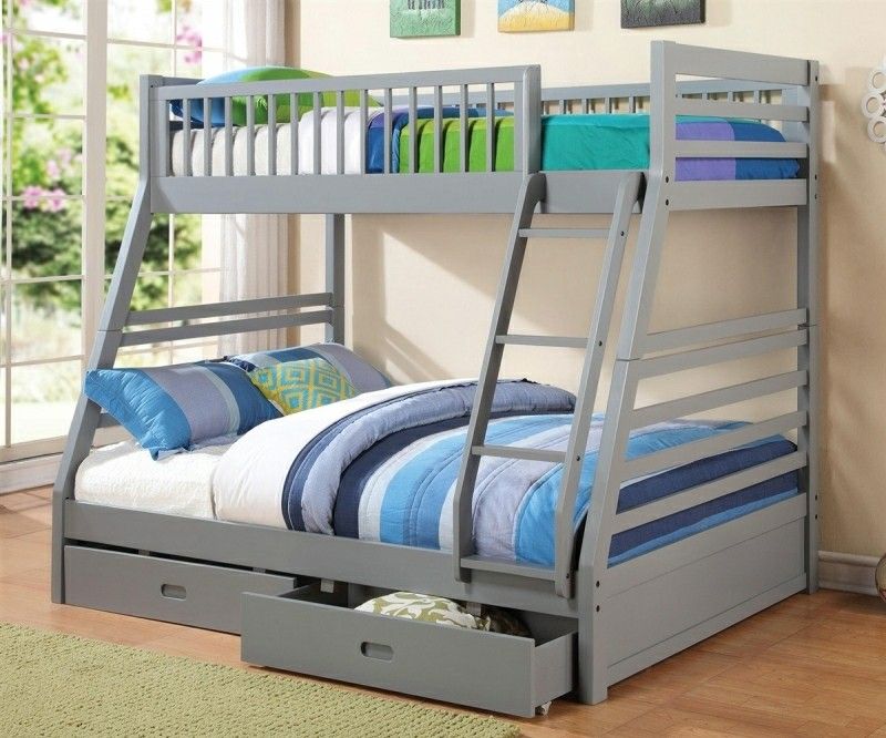 Bunk bed Includes free mattresses and understorage drawers Solid wood Gray color