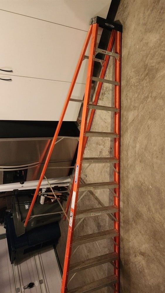 12' step ladder with 16' reach height Brand new sells for $350 - $400. 300 lb capacity/ light weight Extra heavy duty Professional use 11 steps Non-conductive Fiberglass Excellent condition Serious inquiries only