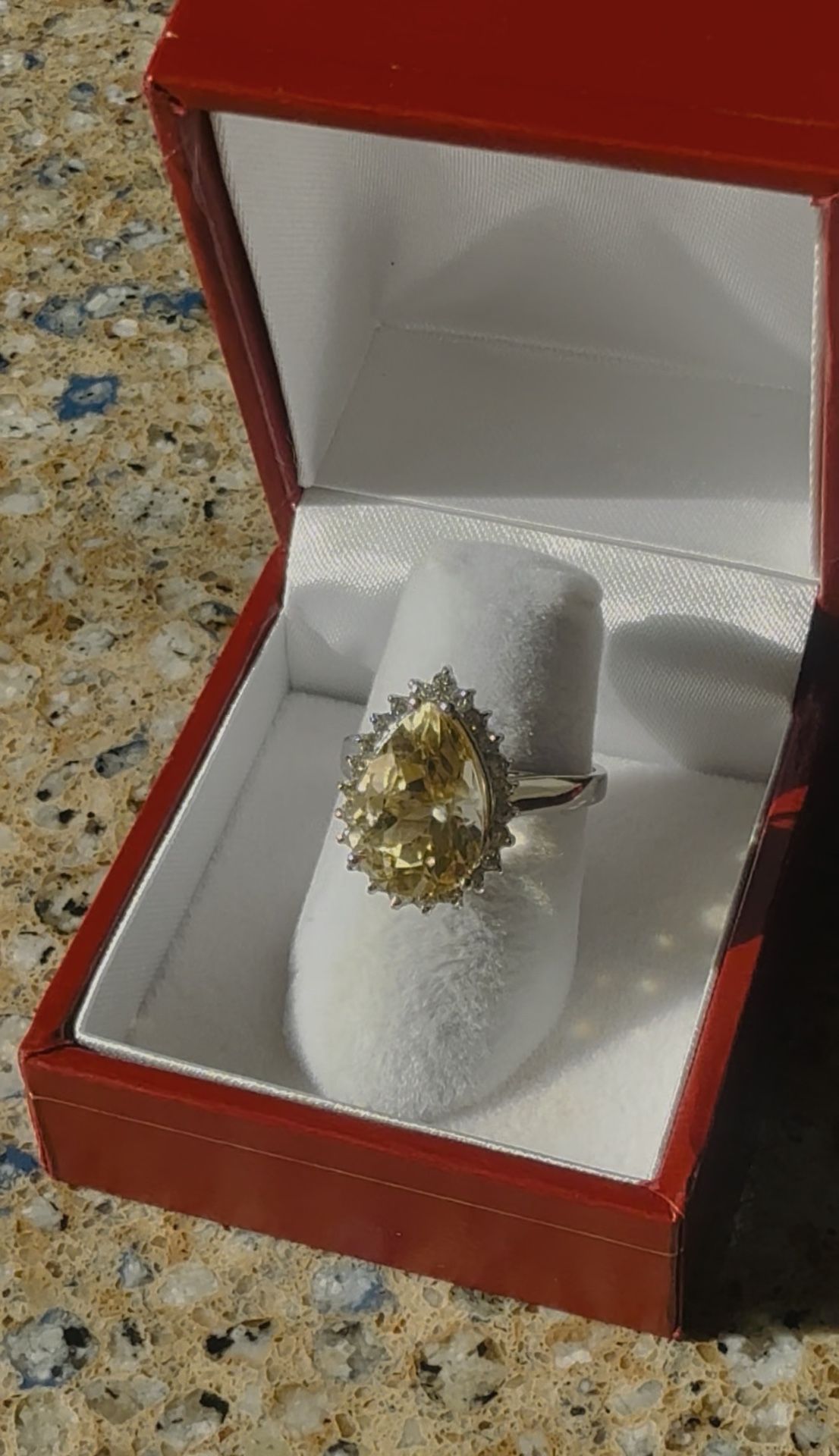 Genuine 5ct. Pear Shape Citrine With Diamonds On A 14kt. Gold!