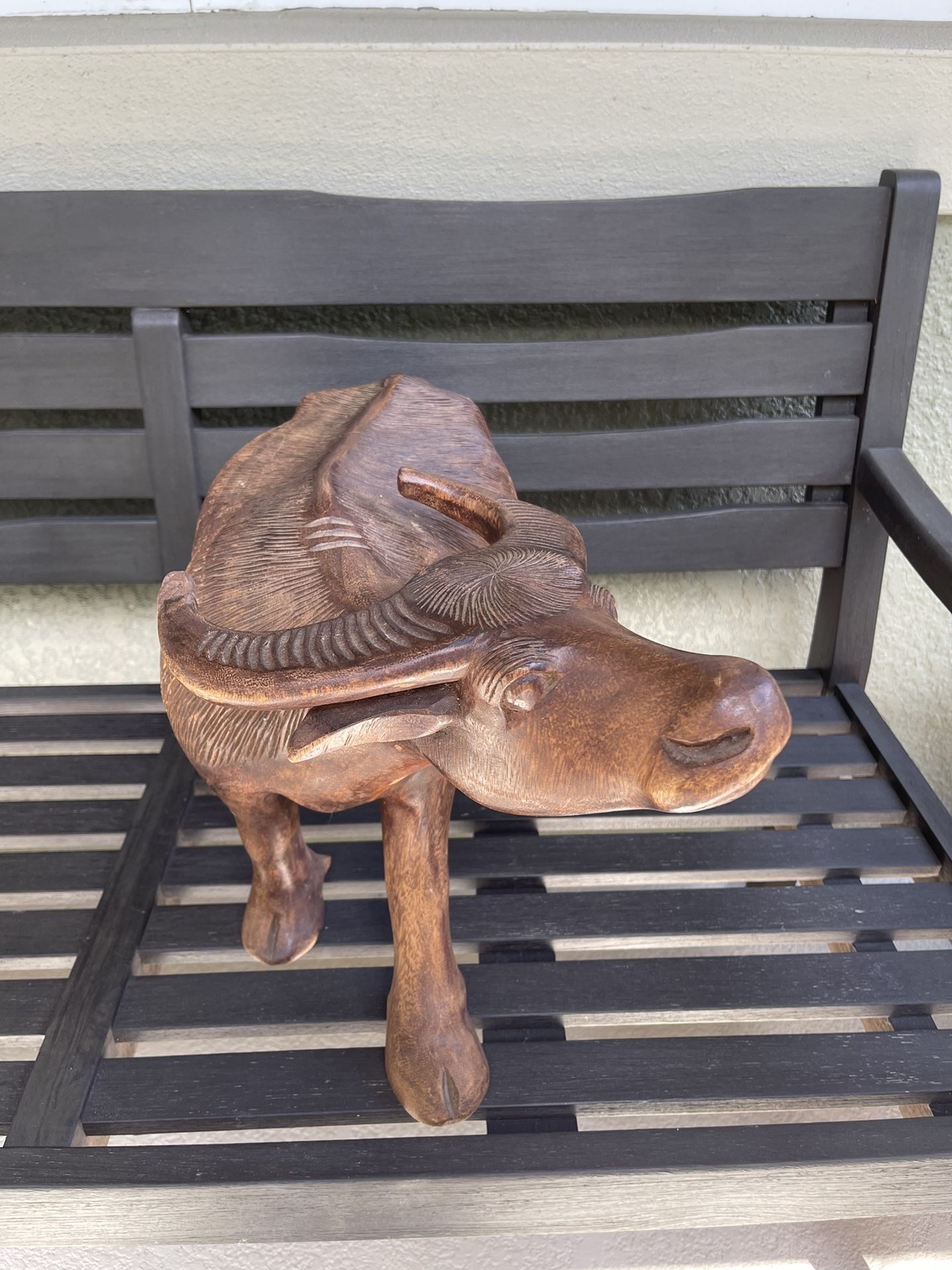 Decorative Yak. Solid wood Measures approx 22” from nose to tail by 13.5” high Approx 9” wide Approx 11 lbs.