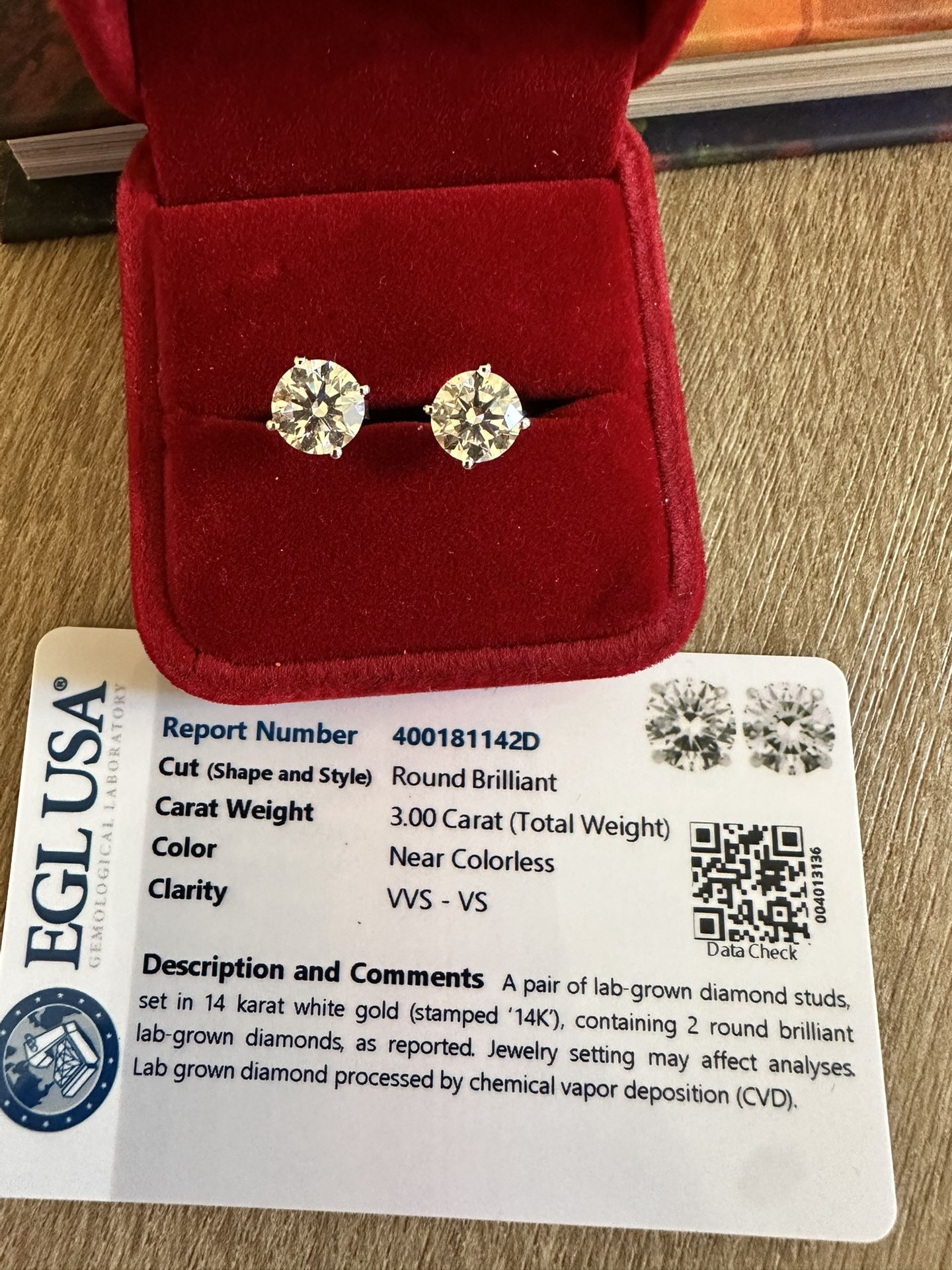 NEW and Stunning 3k Lab Diamond Earrings EGL Certified