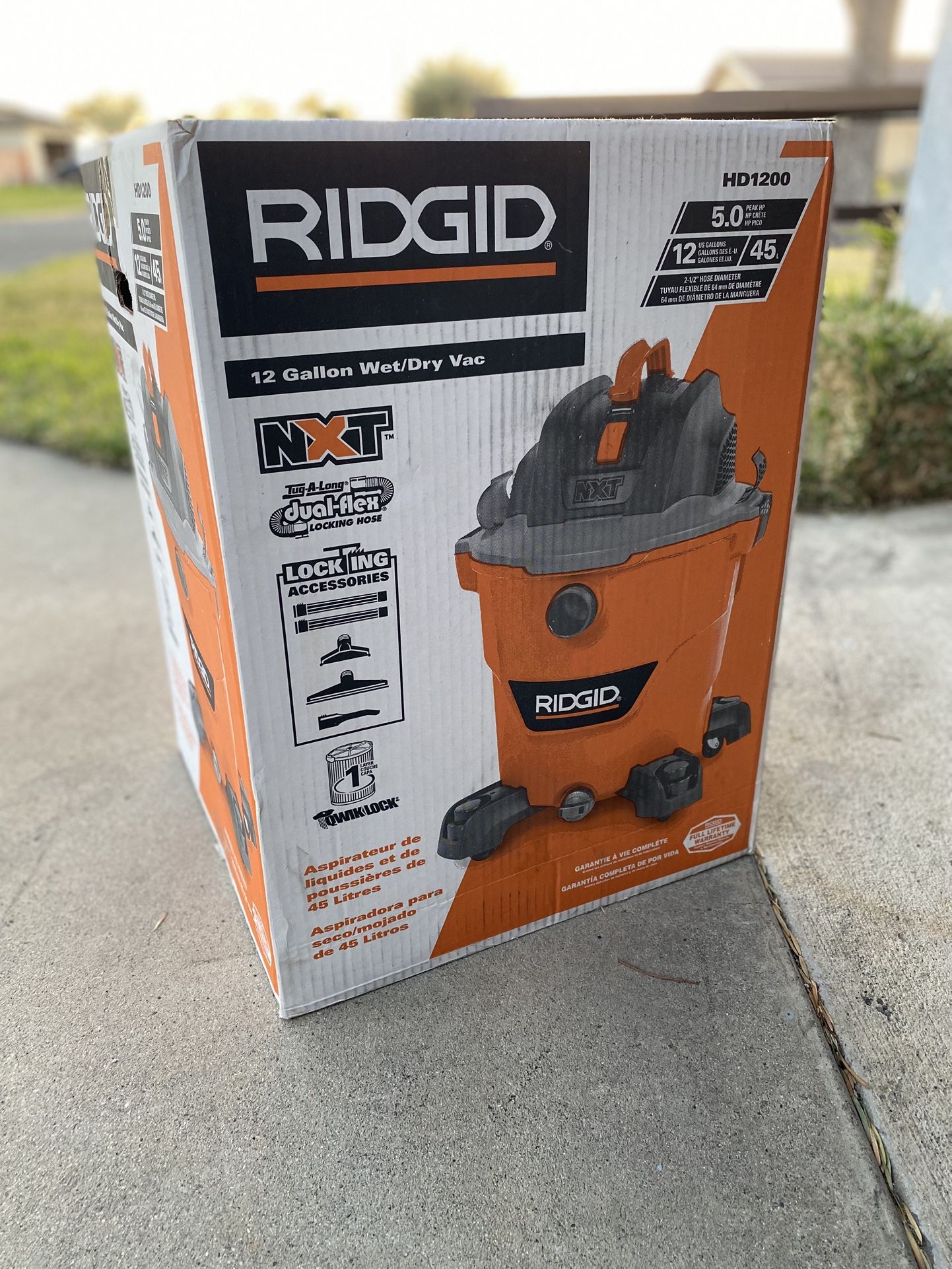 Ridgid 12 gallon 5hp wet dry shop vac. Comes with all attachments still in the box