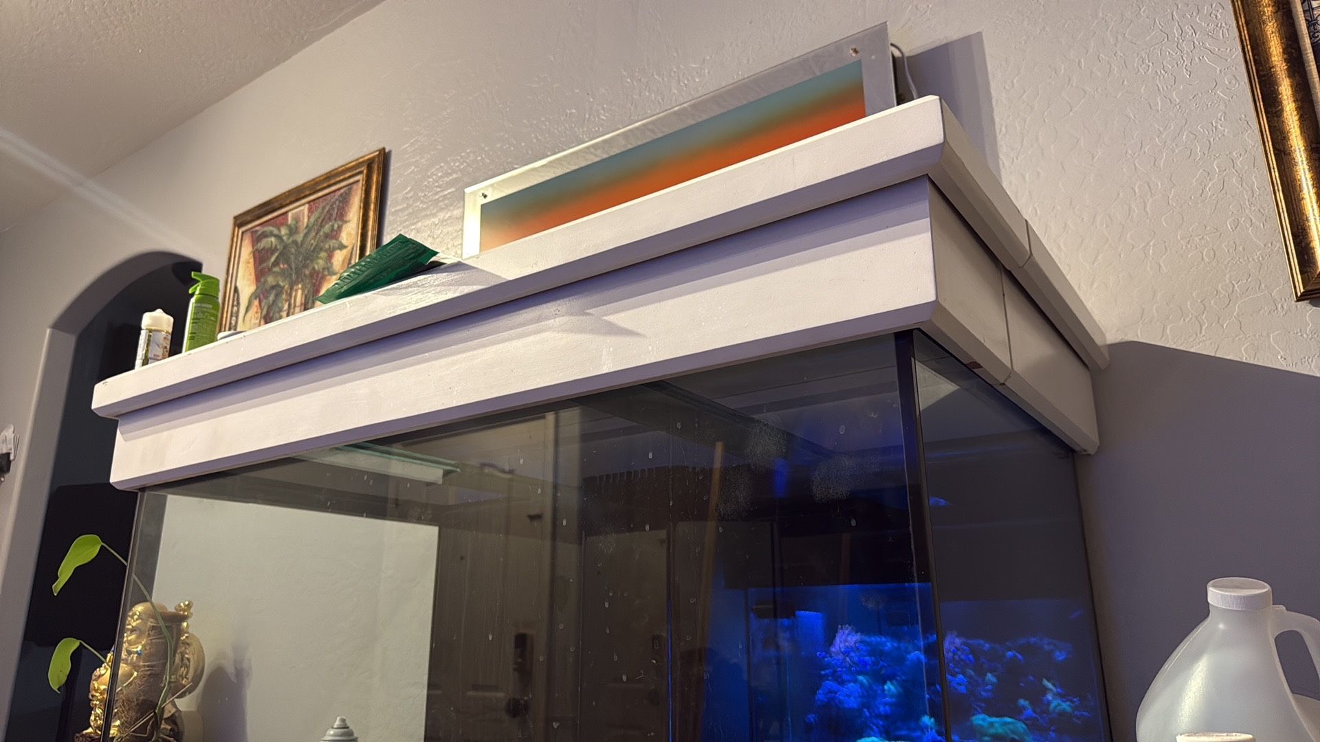 120 gallon tank 48 Long 24 Wide 25”Tall Glass is still in amazing shape Will not work on my stand. Will come with canopy. Will come with a sump you can pick either the Square sump 22”x22”x15” or the eshopp Rs200 (a bunch of filter socks) I also have 3 Red Sea N90 and a 5’ light Holder Does Not Come With The Stand!