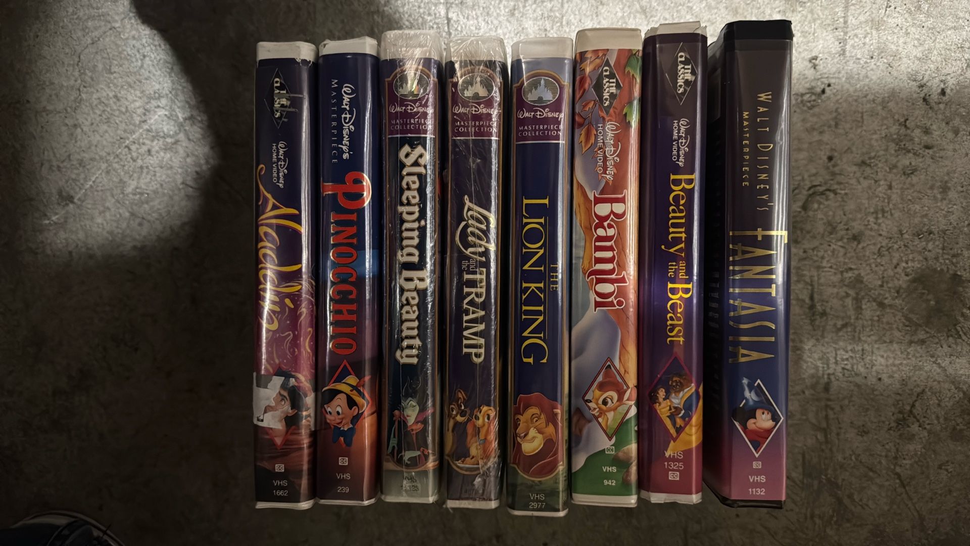 Aladdin Pinocchio Sleeping Beauty Lady and the Tramp The Lion King Bambi Beauty and the Beast Fantasia For sale or trade for fountain pens, fishing gear, airbrush, or ??