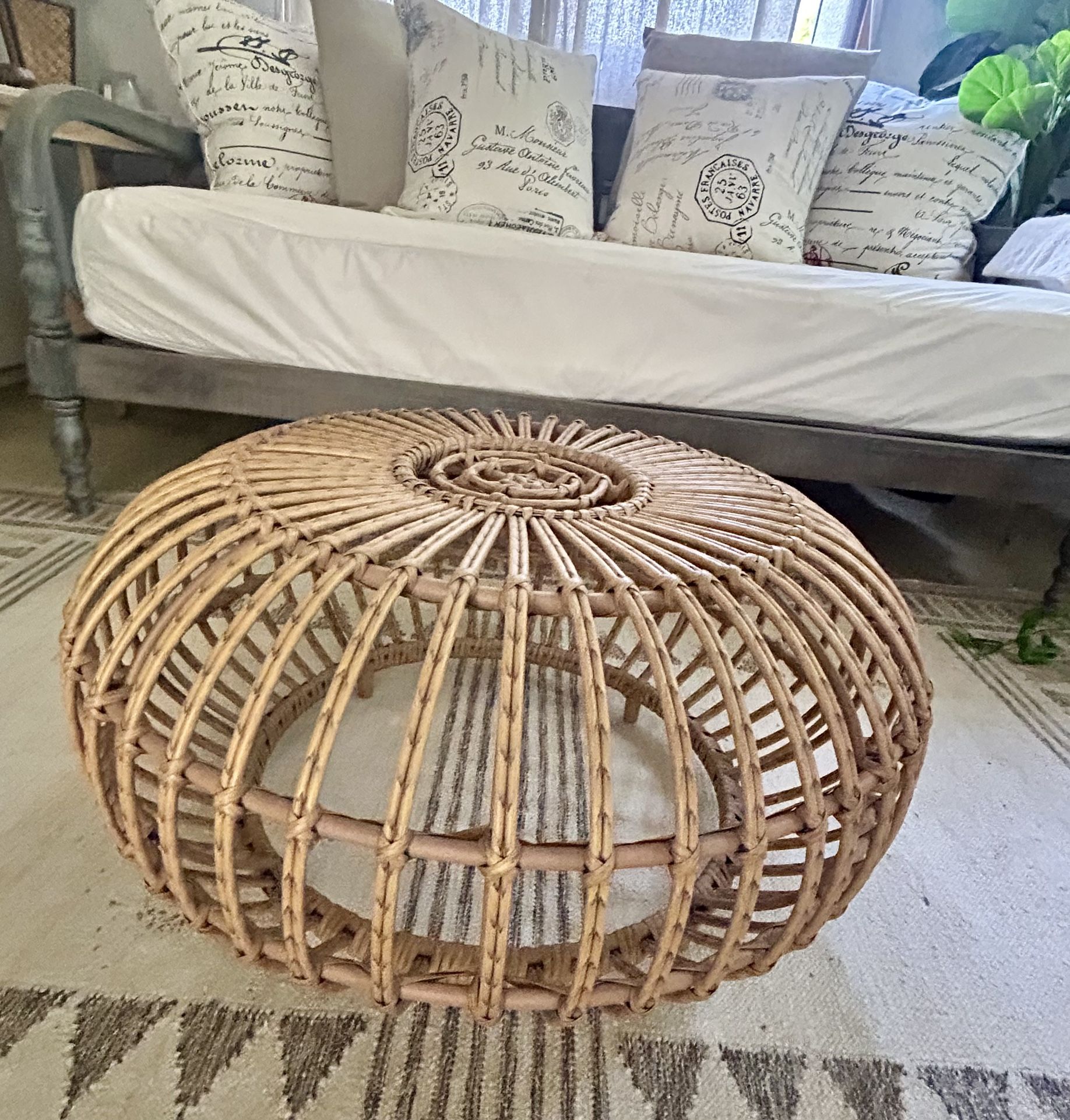 Round Rattan Coffee and Side Table Very cute, boho design. Like new condition.
