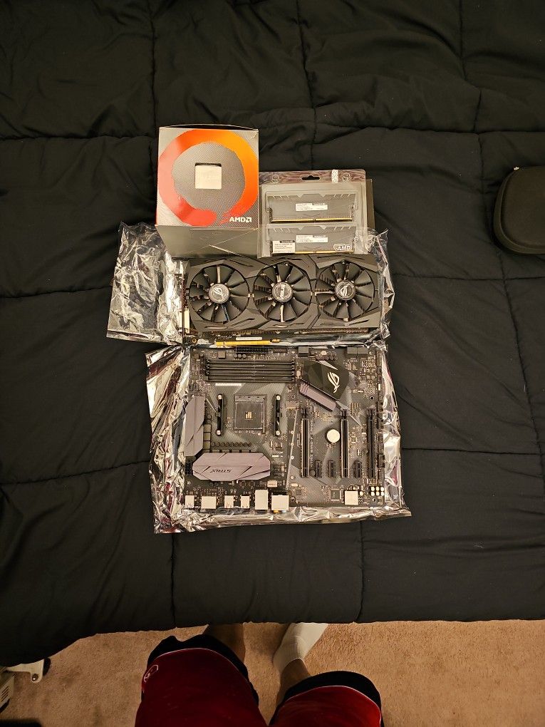 1080p AM4 Gaming Setup – Untested but Stored Properly – $300 OBO Monitor included! (Bundle without monitor is $250) Everything from my daily 1080p rig, upgraded years ago. Stored in anti-static bags/boxes ever since. No bent pins, no burnt smells, fans spin freely and was fully functional when placed in storage. • ASUS ROG Strix GTX 1070 8GB OC (triple-fan, RGB) • Ryzen 7 1700X 8-core/16-thread CPU • ASUS ROG Strix B350-F Gaming motherboard (RGB headers) • 32 GB (2×16) TEAMGROUP T-Force Dark Za DDR4-3200 • UNUSED Wraith Prism RGB cooler (boxed, never mounted) • ~70% full tube of Arctic XTM50 thermal paste • **BenQ GW2480-T 24" IPS 1080p Monitor** (eye-care tech, speakers, HDMI/DP/VGA, tilt/height stand,power cable)