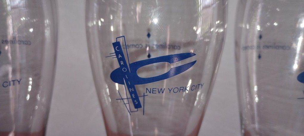 Caroline's comedy club in New York City is now closed. It closed recently, New Year's Eve was its last show. These glasses are not from that show. $10 each for $25 for all three. Please pick up at my location in Howell New Jersey near route 9 North.