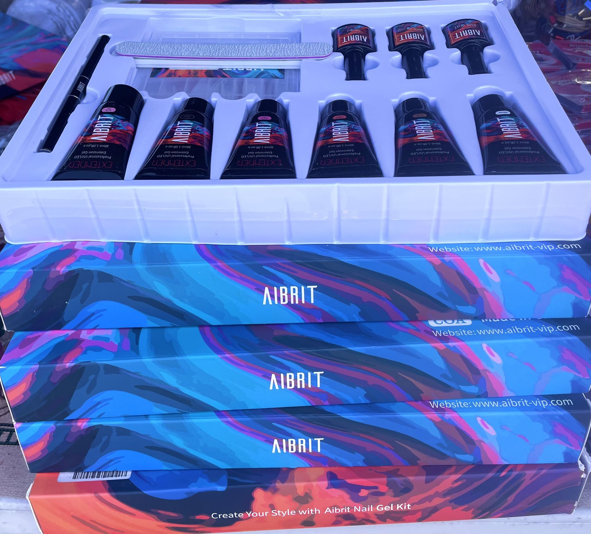 AIBRIT Nail Enhancements Gel Nail Kit with Strengthening Base and Coat. spring summer, UV LED gel polish, 6 colors and three transparent 2 files and a nail pack 120 pieces. There are special prices for wholesale