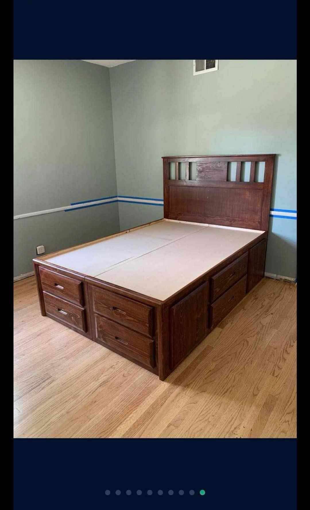 Full bed frame with mattress available and if interested in buying a mattress text me for price. Color is optional and can be picked from the colors displayed on the piece of wood. Delivery is available and free if you live in Norwalk or near. Delivery prices vary depending on the distance from our store to you. We deliver to LA, IE, SFV, SGV