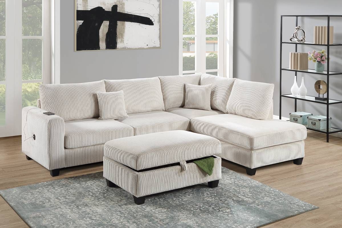 Beige Sofa Sectional w/ Free Ottoman