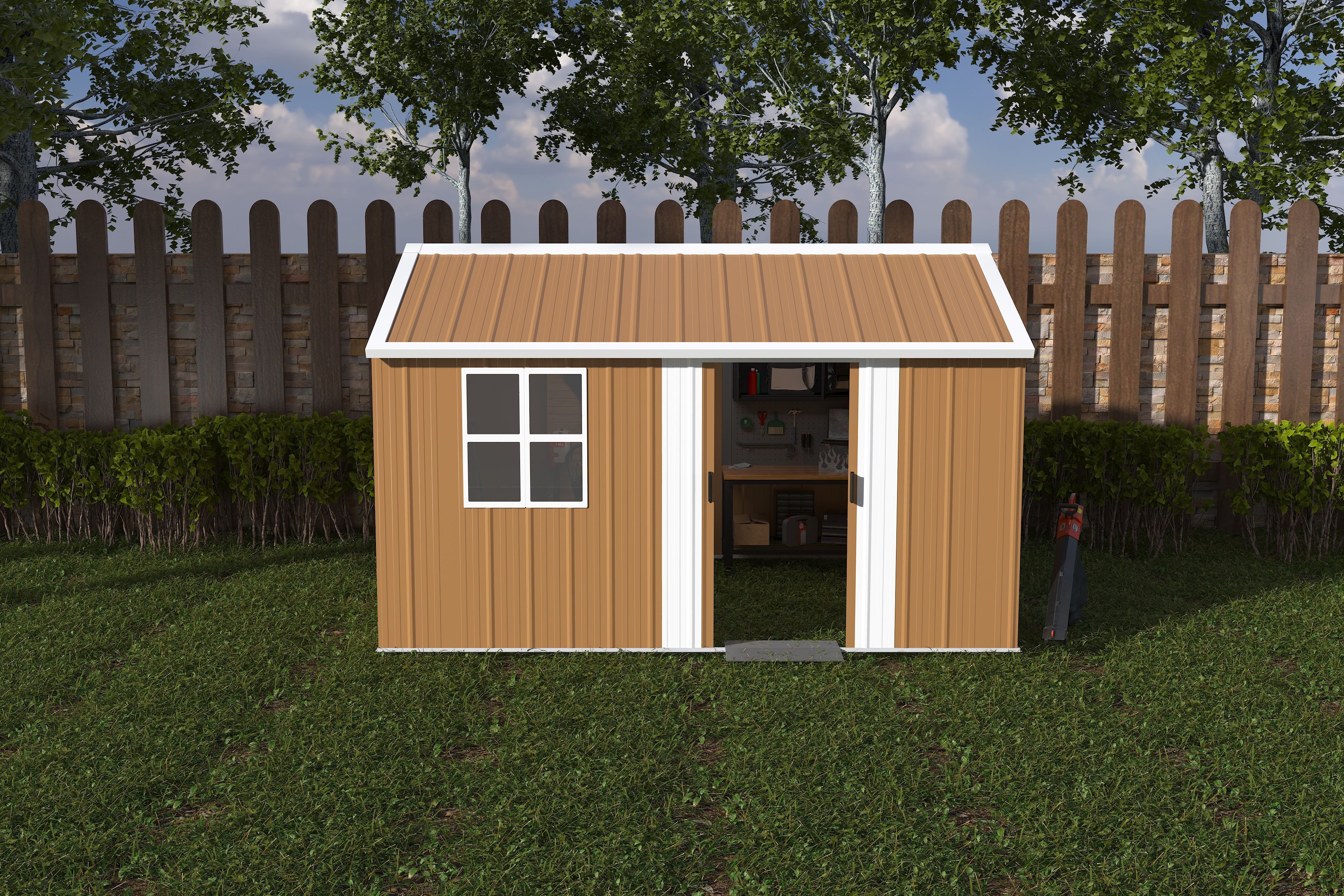 12x10 FT Heavy-Duty Metal Storage Shed with Windows, Lockable Door & Ventilation - Weatherproof Outdoor Garden Shed for Backyard, Lawn, and Tool Organization Package Size : Sub-item 1: W2700P344180 Package Quantity: 1 68.5 * 19.29 * 3.94 in. 98.77 lbs. Sub-item 2: W2700P344179 Package Quantity: 1 66.14 * 26.38 * 3.94 in. 144.4 lbs. Product Dimensions : Assembled Length (in.): 141.73 Assembled Width (in.): 117.32 Assembled Height (in.): 76.37 Product Weight (lbs.): 243.17 【Spacious 10x12 FT Design】- Our large metal shed provides generous storage space for backyard tools, garden equipment, patio furniture, and seasonal items. Perfect for keeping your out door area organized while doubling as a cozy pet shelter. Stabilized Heavy-Duty Frame – Integrated cross-braced steel framework with welded joints and ground-anchored base eliminates wobbling, maintaining structural integrity in 60+ mph winds. 【Weatherproof Sloped Roof】- Features a specially designed tilted roof that prevents rainwater accumulation, reduces rust risk, and provides additional overhead storage space for longer items. 【Military-Grade Galvanized Steel】- Constructed with thicker, rust-resistant panels featuring overlapping seams for superior water protection. UV-resistant coating ensures years of weatherproof performance. 【Smart Space-Saving Solution】- Clears clutter from your yard, garage or basement with efficient storage for lawn mowers, trimmers, bikes, and bulky outdoor items - instantly transforms messy spaces. 【Secure Sliding Door System】- Smooth-gliding rail mechanism operates effortlessly while saving space. Includes reinforced lockable handle to protect your valuable equipment from theft. 【Multi-Purpose Ventilated Structure】- Versatile enough to serve as a garden shed, pet house, garbage enclosure, or DIY workshop. Top ventilation slots maintain airflow to prevent moisture buildup. 【Stress-Free Assembly】- All components are clearly numbered and accompanied by illustrative explanations. Our online team is always ready to assist you with the installation, ensuring your complete peace of mind. 【Parts and Parts List】Before you start, separate and identify all the parts and hardware to be sure thatyou have all the necessary parts for your building (refer to the Parts List Page). W2700S00064 CA10