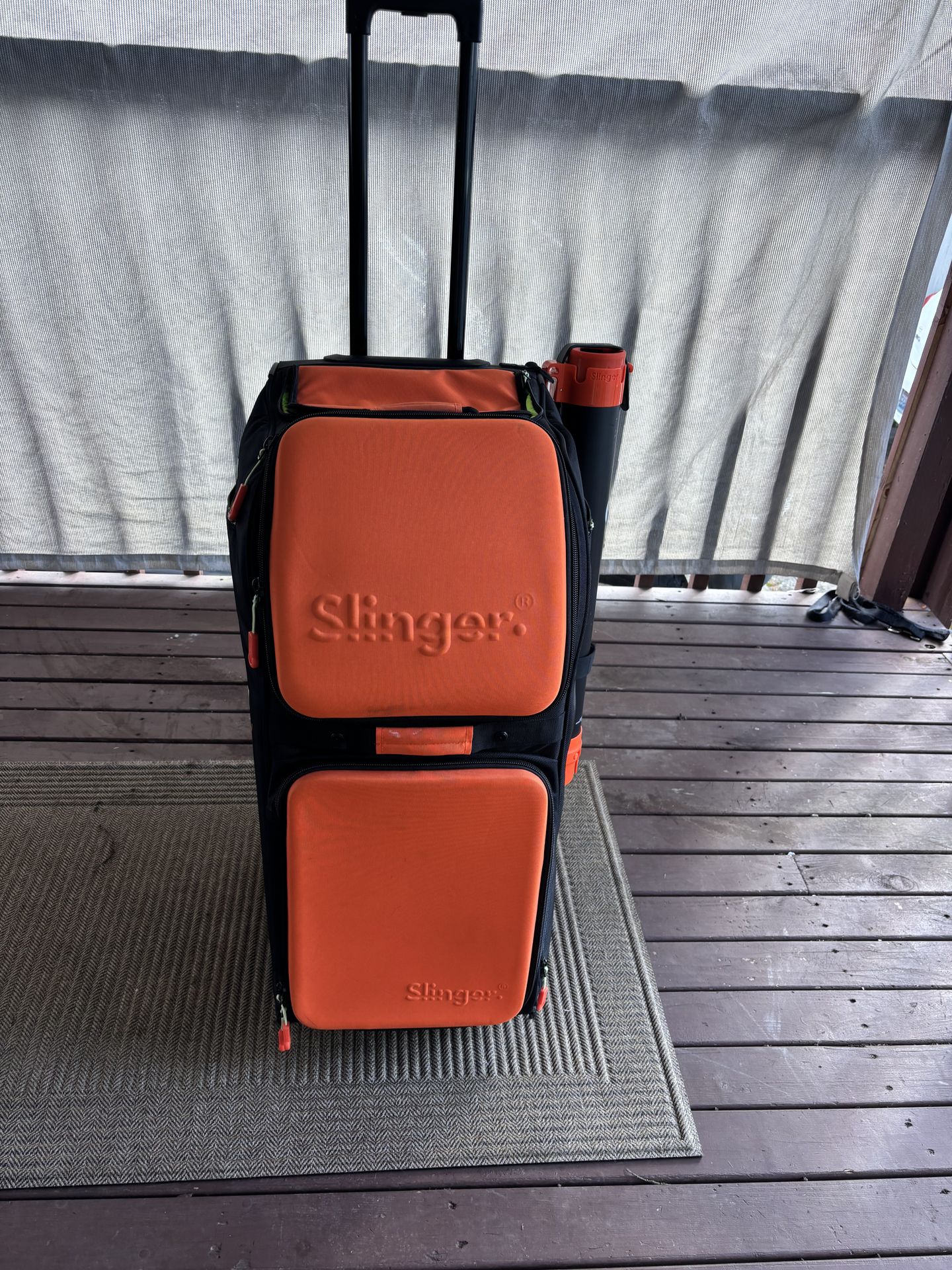Used pickleball machine bought in march 2024. Never used for more than 1.5-2 hours at a time. Comes with Franklin x balls and oscillator which was never used. Specs from website: Slinger Bag Pickleball has been designed and engineered with the specific needs of Pickleball players in mind. Slinger Bag Pickleball is lightweight, portable, highly versatile and affordable. Aimed at all levels of Pickleball players, Slinger Bag Pickleball holds up to 92 Pickleballs and allows users to control the speed, feed, elevation and spin, facilitating a wide variety of play, practices and workouts. Simply wheel your Slinger Bag Pickleball to the court and set it up in just a minute. Slinger Bag Pickleball allows you to get out on court to play at any time and almost anywhere without the need of a playing partner! CONTAINS: Slinger Pickleball Launcher 60 Pickleballs (details below) Remote Control Oscillator Ball Tube Camera Holder Li-Ion Battery Charger PRODUCT SPECIFICATIONS: Slinger Bag weighs 42lbs/19kg Dimensions: 14" x 18" x 34" (35.6cm x 45.7cm x 86.4cm) Launch speed varies from 10-45 mph (16-73 km/h) *The type of Pickleball used will also affect speed and spin. Powerful Lithium Ion battery lasts up to 3 hours Easy on/off control for both the Slinger Bag and Slinger Oscillator with the convenient remote control Launcher is equipped with an Elevation Knob, easily adjusting the elevation between 10 and 40 degrees Launcher has a variable ball feed frequency between 2 and 7 seconds. Giving the player the ability to run a variety of drills.