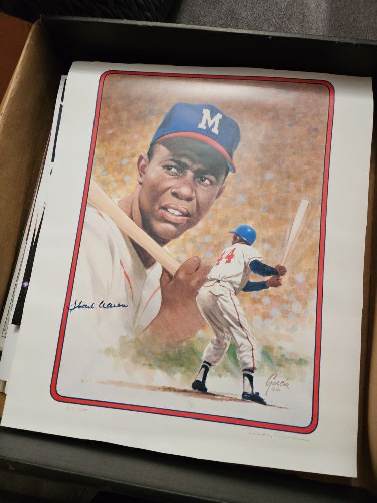Hank Aaron Autographed Lithograph Rudy Garcia 14”x19" Hand Signed Autograph /500