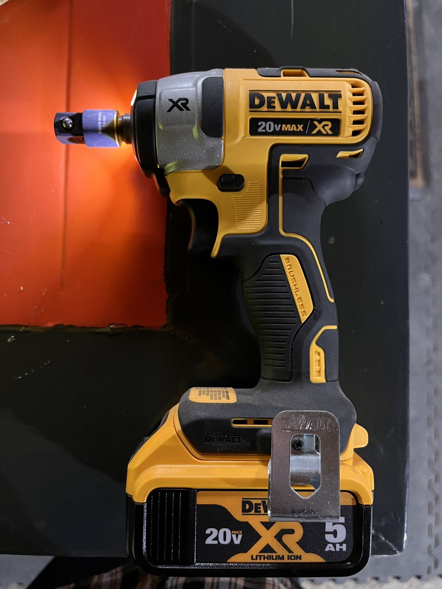 Brand new 3/8” Dewalt 20V. Impact Wrench comes with 5ah battery and charger. No hard case.