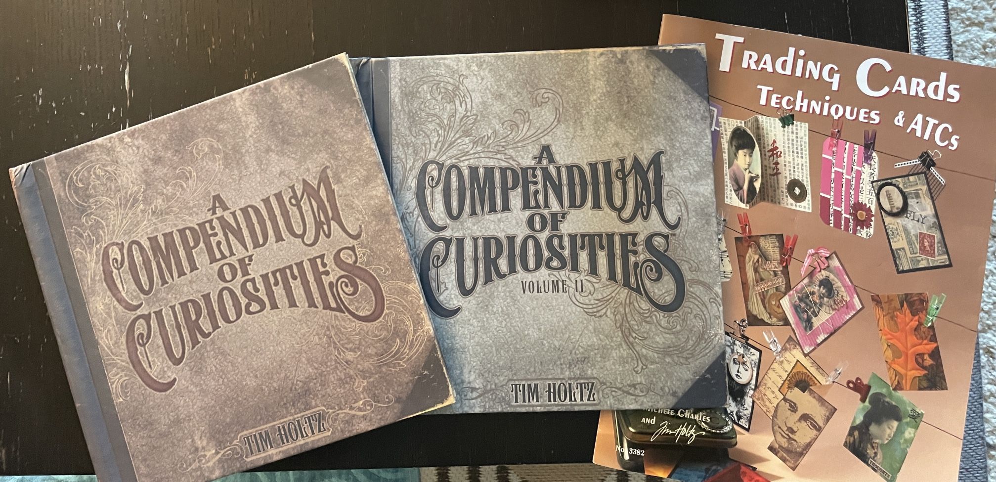 Set of Crafting books by Tim Holtz. In excellent condition. Compendium Of Curiosities Vol I & II Including a free magazine of Trading Card Techniques & ATC as well