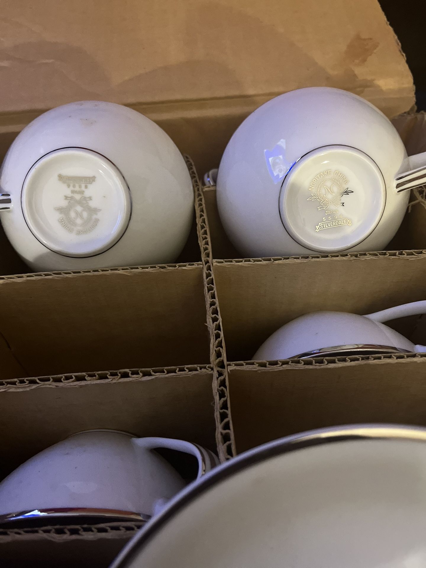 Vintage china in original boxes Tea cups with sauces Crystal glasses