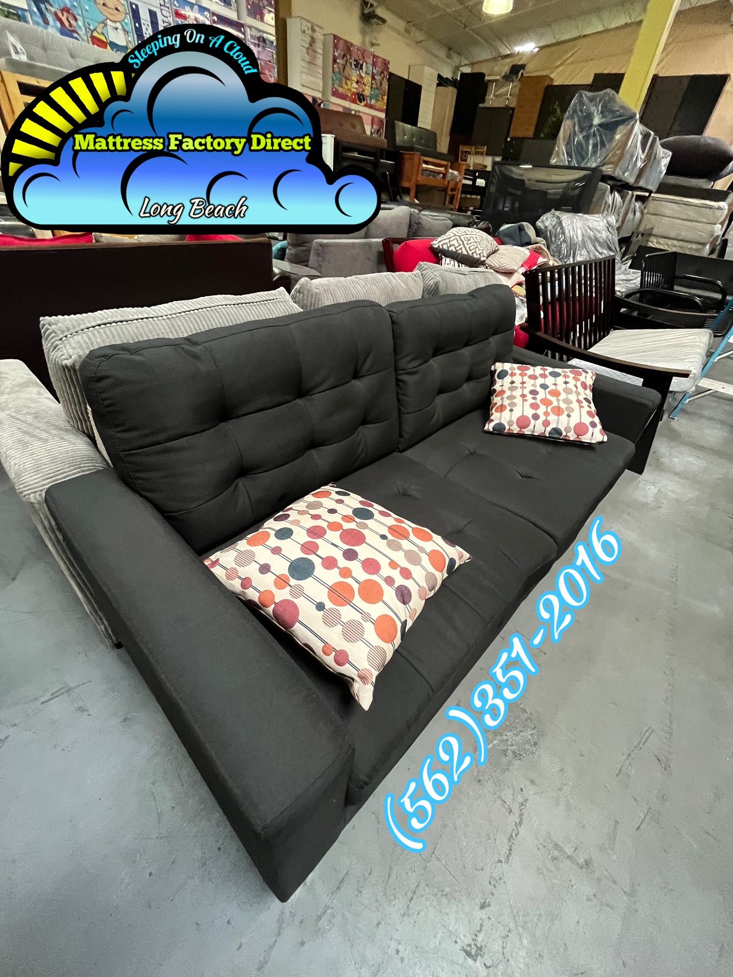 Black Love Seat 2 Seater Couch New With Accent Pillows
