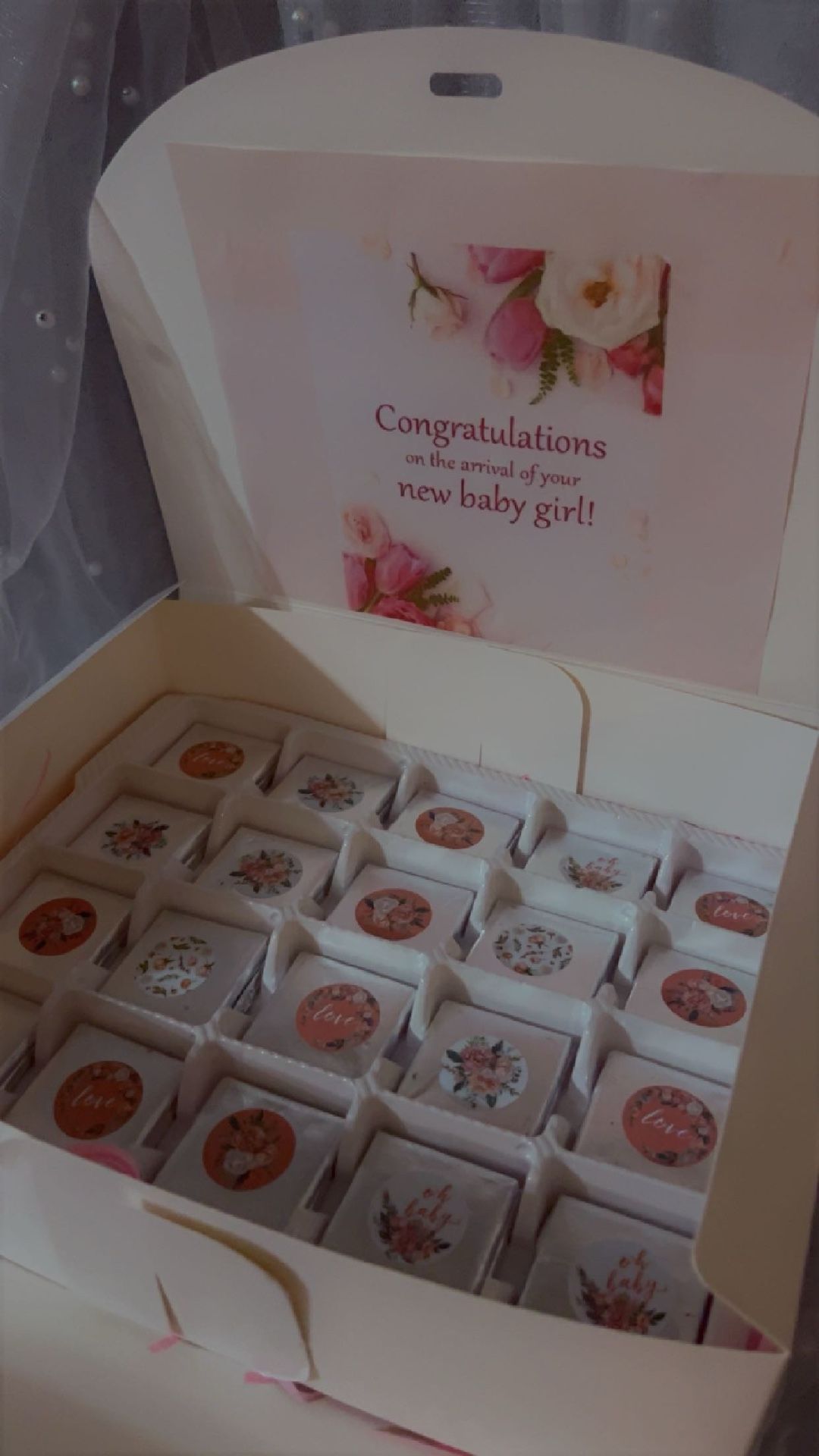 Baby girl gender gift box 40 piece of chocolate. The perfect gift for loved ones💗
