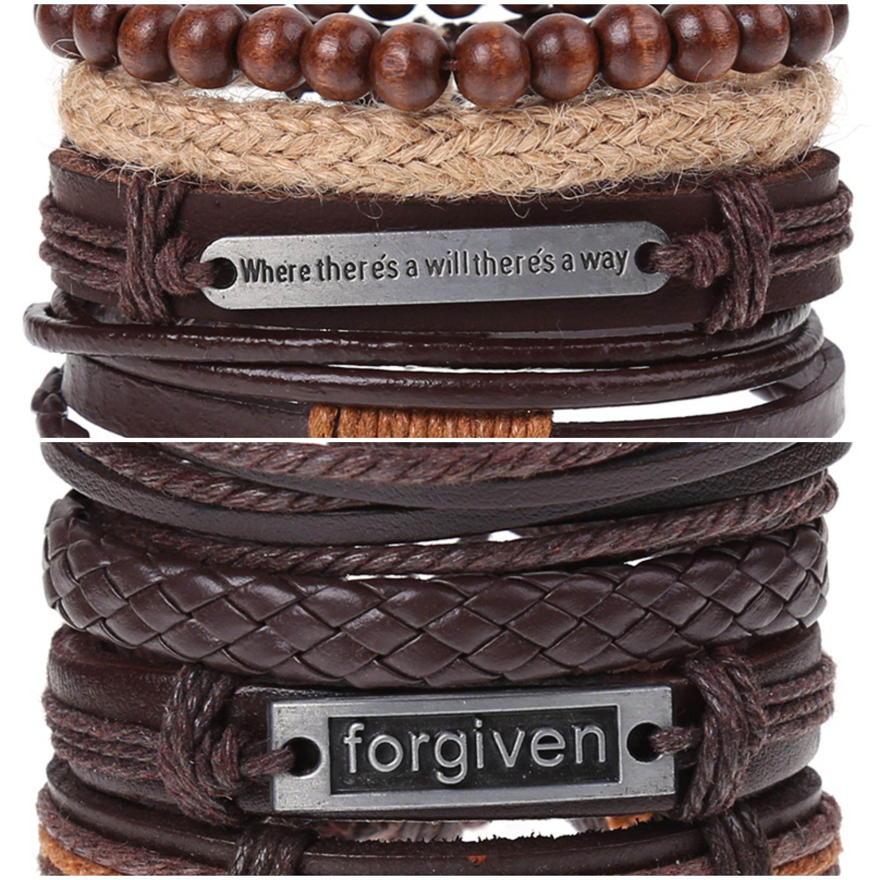 2 x Set Adjust. Size up to 9.5inc Leather Bracelet, (Will/Way-Forgiven)