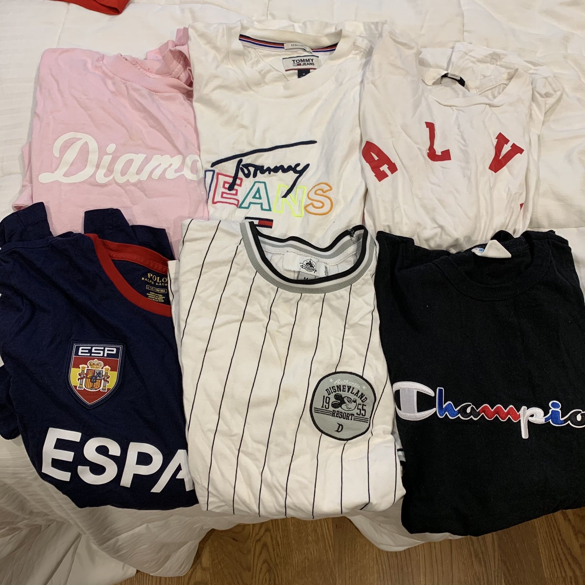 Disneyland Baseball Tee size M fits like a small - $15 Light Pink Diamond Tee size M - $15 Black Champion Tee size M - $15 Navy Polo Ralph Lauren España Tee size L fits like a medium - $15 White and Red Calvin Klein Tee size M - $15 White Tommy Hilfiger Tee size M - $15 Take all for $70
