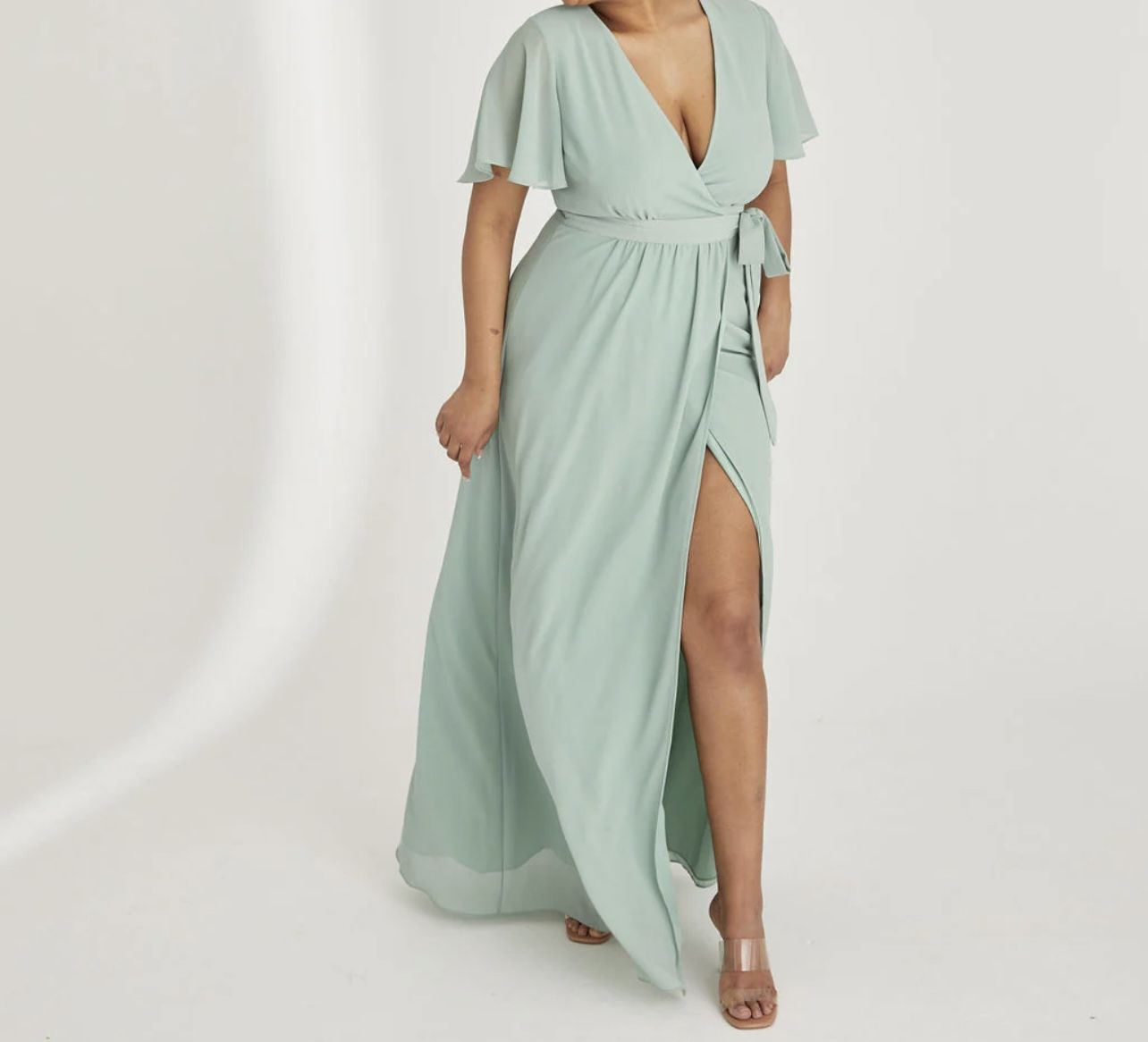 Arbor dress size x-large new Wrap Tie Chiffon Bridesmaid Dress - Sage Mint green maxi dress with flutter sleeves and tie waist #maxidress