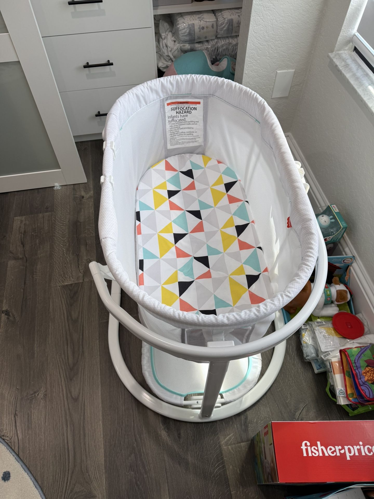 Fisher Price Bassinet that you can manually sway to soothe your baby. Very gently used, great condition!
