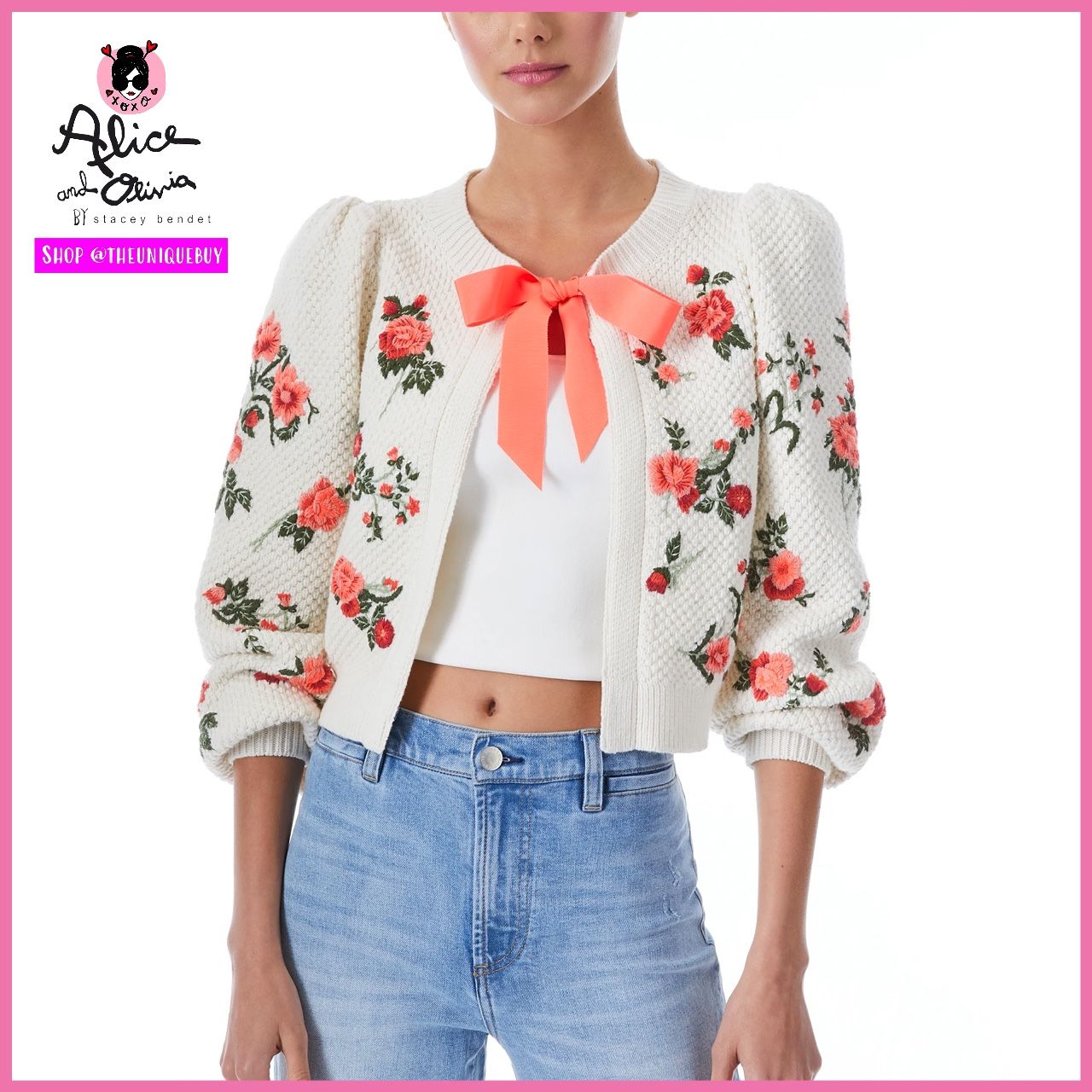 VARIOUS SIZES AVAILABLE. FOR SIZE AVAILABILITY AND SHIPMENT, SEARCH FOR THIS ITEM ON POSHMARK. 5 STAR SELLER AND POSH AMBASSADOR 🌟 YOU WILL BE ABLE TO DO ACTUAL ELECTRONIC SIZE SELECTION PRIOR TO PURCHASING THERE! MY HANDLE / USERNAME ON THE SITE IS THE SAME AS HERE: ‘TheUniqueBuy’. All other inquiries, message me here! SAME DAY OR NEXT BUSINESS DAY SHIPPING ON ALL ORDERS 🚚 📦 SWIPE ↔️ OR SCROLL ↕️ TO OBSERVE VISUAL MEASUREMENTS AMONGST ADDITIONAL PHOTOS. All A+O pieces in my store are 100% authentic, unworn / never tried on and supplied directly through the designer. This feminine sweater is a total statement in itself: See colorblocking, an oversized bow closure and a slim, feminine fit. Throw it over a bodycon dress, a camisole or wear it with denim, whatever you like! Long sleeve Round neck Grosgrain bow tie closure Blouson sleeve Cropped 100% merino wool Soft white & coral pink Total length: 19” Designer details: Fits true to size, take your normal size Model is wearing a size Small and her measurements are 5'10", 32" bust, 22.5" waist, 34.5" hip A+O Style Tip: Bows can be worn at front or back Dry clean only OBSERVE MEASUREMENTS AMONGST PHOTOS FOR EACH SIZE Comfy | Cold Season | Spring | Fall | Winter | Soft | Cableknit | Bohemian | Boho | Gorgeous | Knit | Knitted | Ribbed | Cocktail | Cute | Designer | Stacey Bendet | Coral Pink | Coral Orange | Green | Flowers | Floral | Beautiful | Wool | Pretty | Sweater | Sweatshirt | Feminine | Jumper