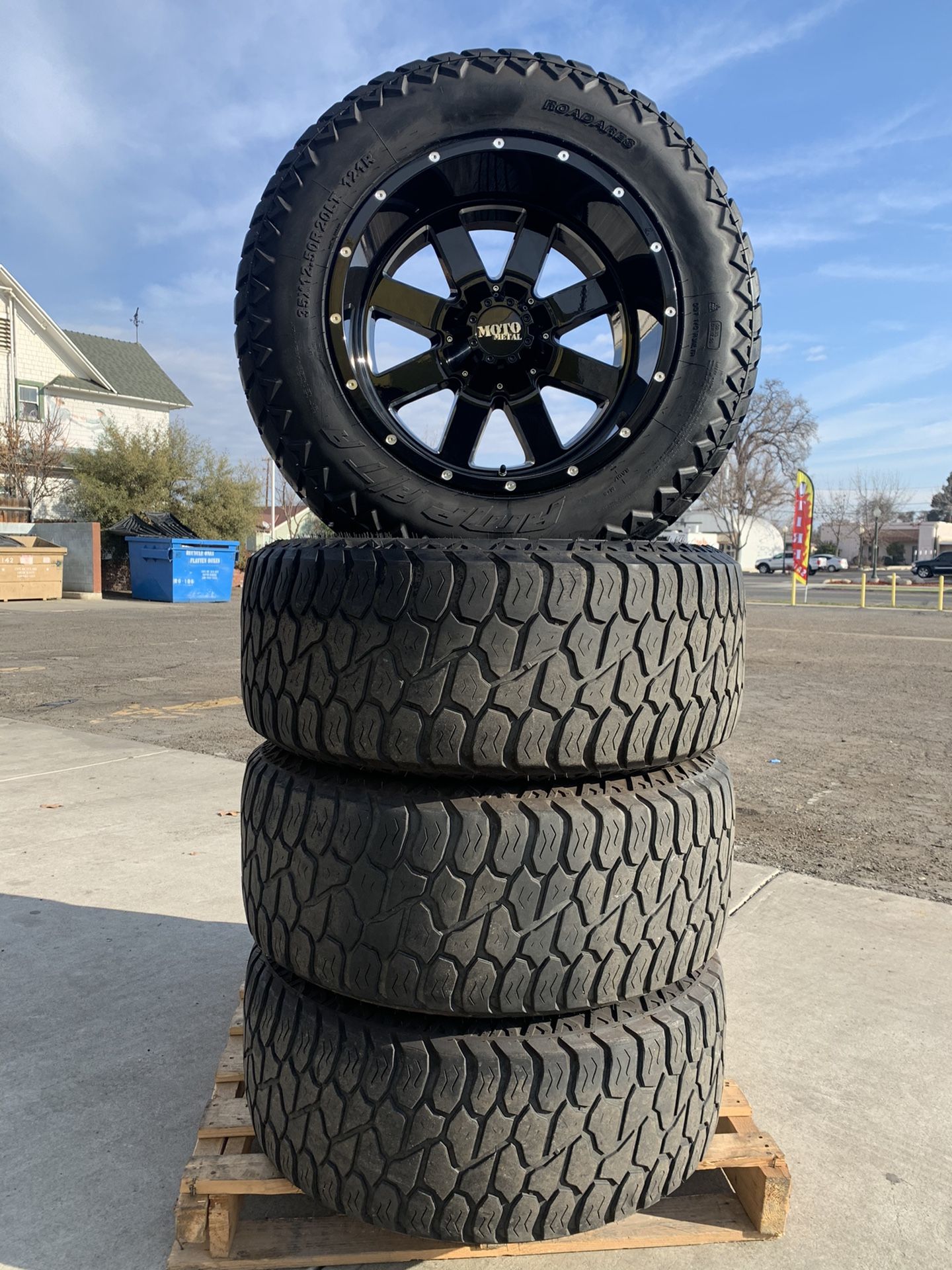 35x12.50R20 AMP ALL TERRAIN 50% Bolt Pattern 6x5.5 6x139.7 Moto Metal MO962 Black Milled Includes TPMS