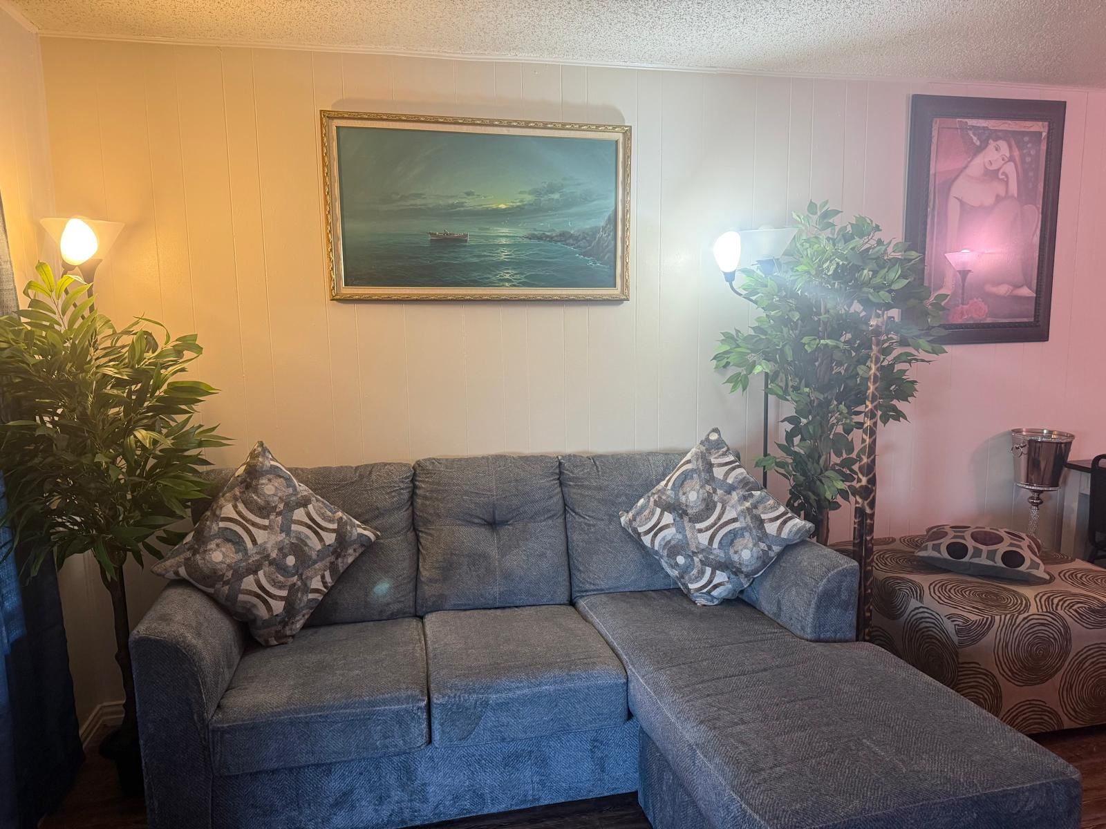L shape blue sofa