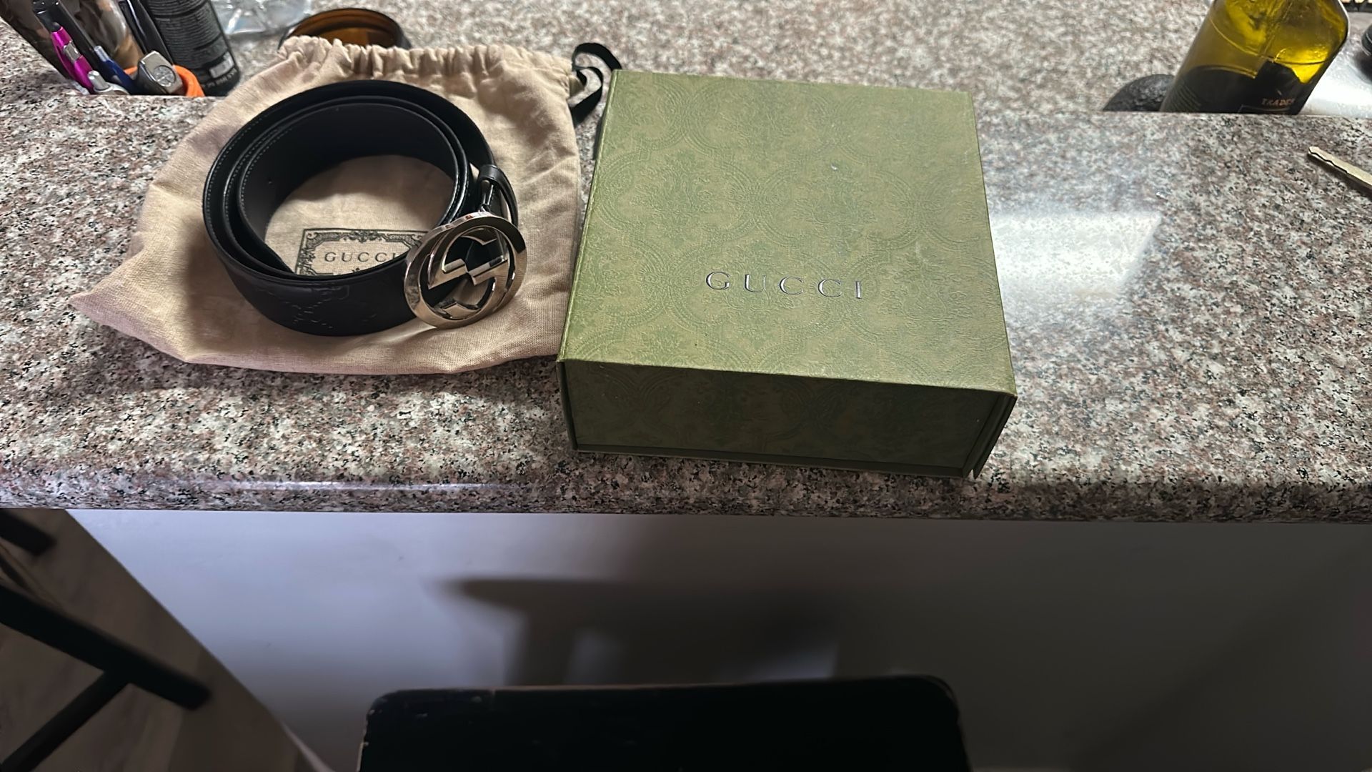OG Black Gucci Belt Embossed With Gucci Logo