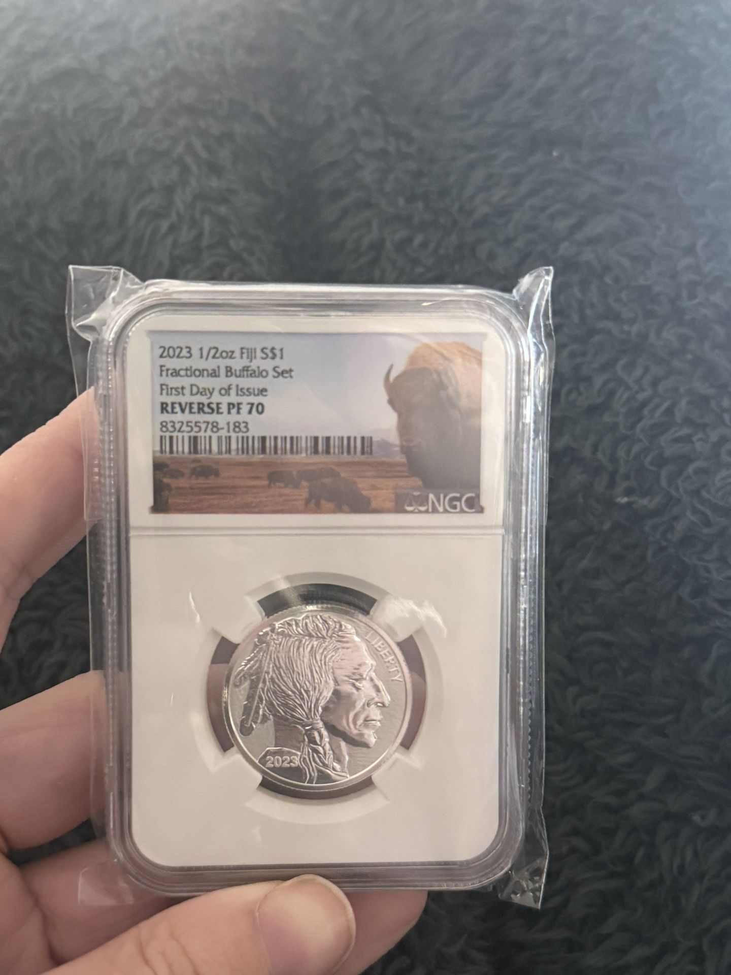 1/2 oz silver coin - 2003 1/2 Fiji $1 first day of issue graded slab