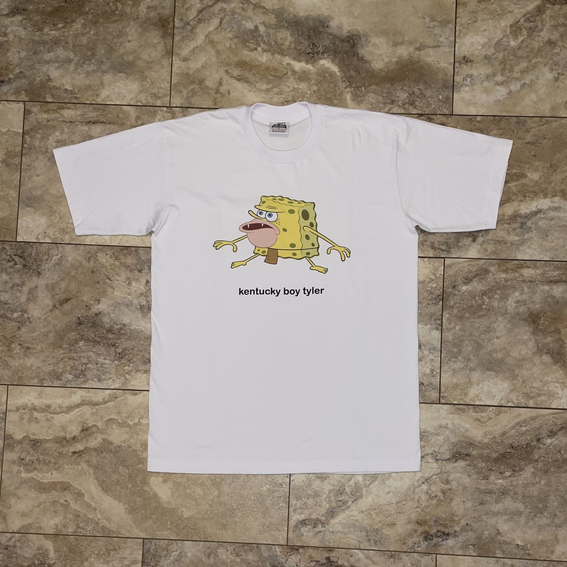 SpongeBob SquarePants “SpongeGar” x Kentucky Boy Tyler Cotton T-Shirt White Very Rare Runway Celebration Shirt Size Large (Chest 22”, Length 30.5”) Brand New / Never Worn We Accept Trades