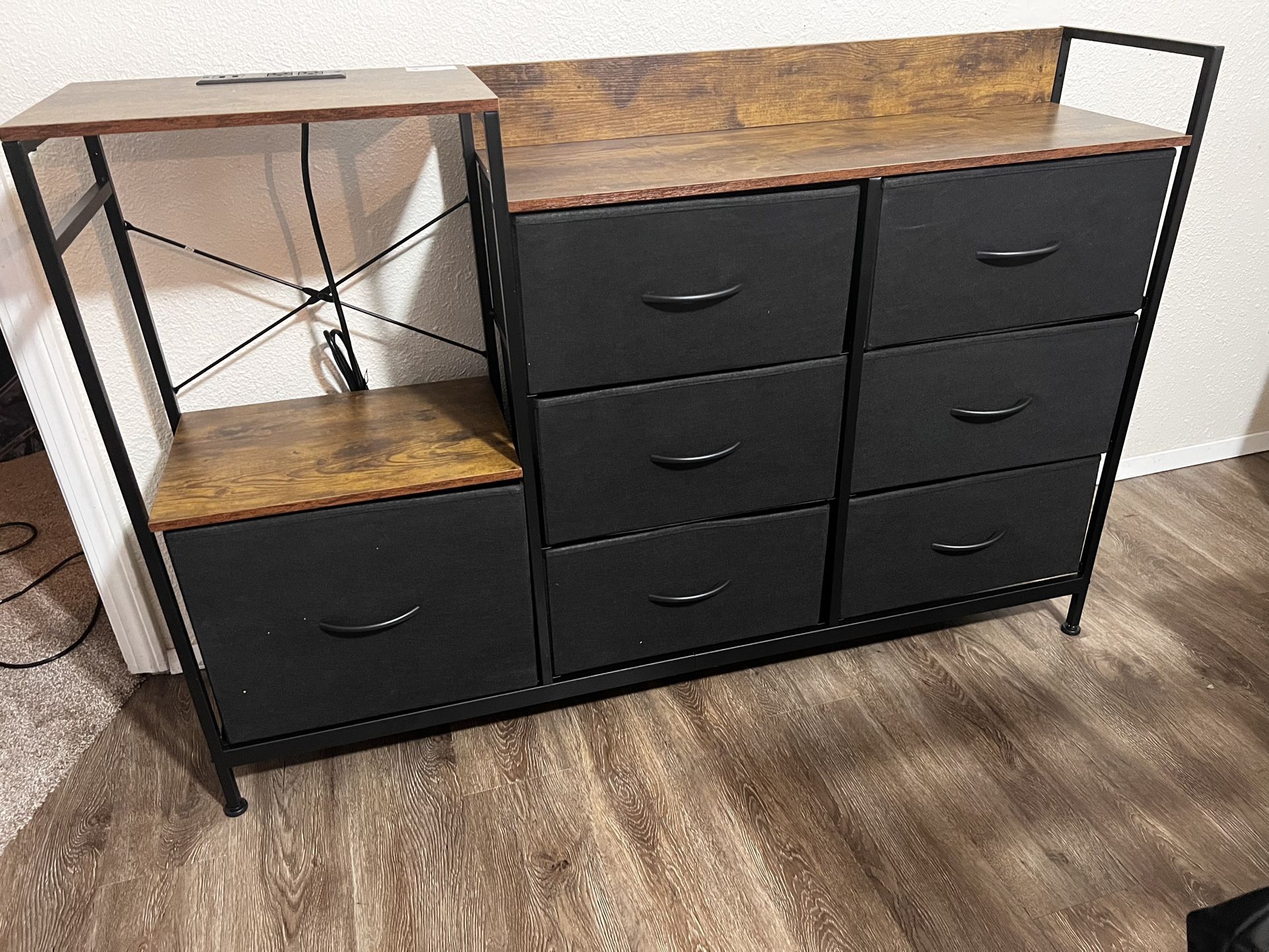 TV Stand with Charging Station, TV Dresser for 52'', Media Console Table, Long TV Stand for Living Room TV Stand with 8 Drawers and Shelves(Black) New, newer used
