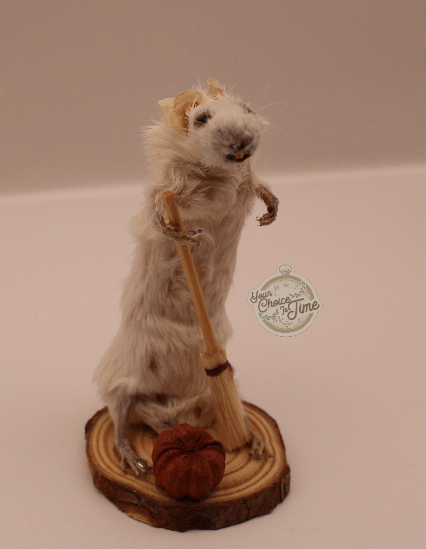 Cute little mouse with a broom, pumpkin,and nubby tail! Selling for $50,can be shipped for $10. I take zelle,paypal,and venmo! #animalart #taxidermy #smallbusiness #yourchoiceistime