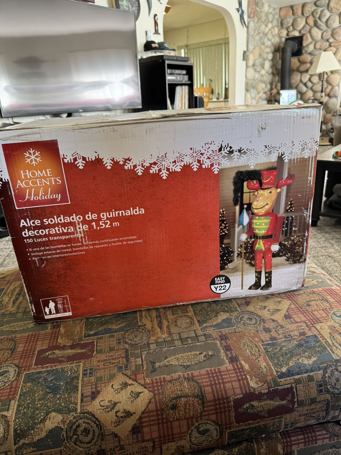 Home accents 5 foot lighted tinsel moose soldier. Sealed in box, never used.