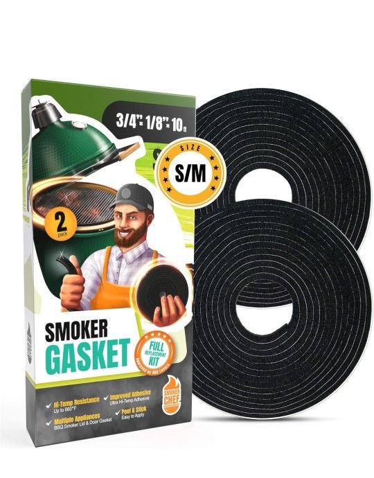 Brand new Big Green Egg gasket replacement. 2 pack. Size S/M. Self adhesive and easy to install.