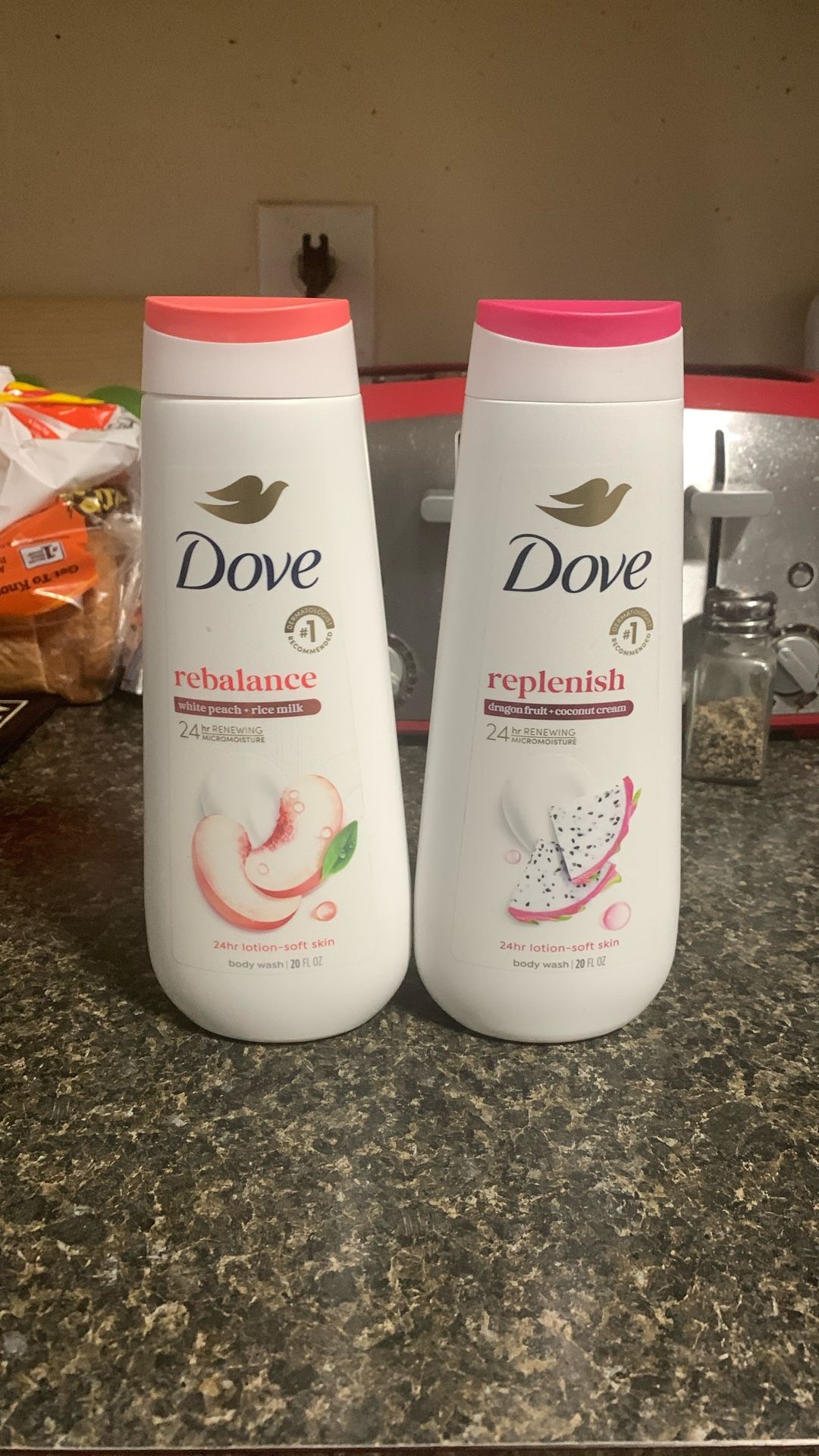 Two new bottles of Dove body wash, assorted fragrances. These would cost you $15.94 plus tax if purchased at Walmart.