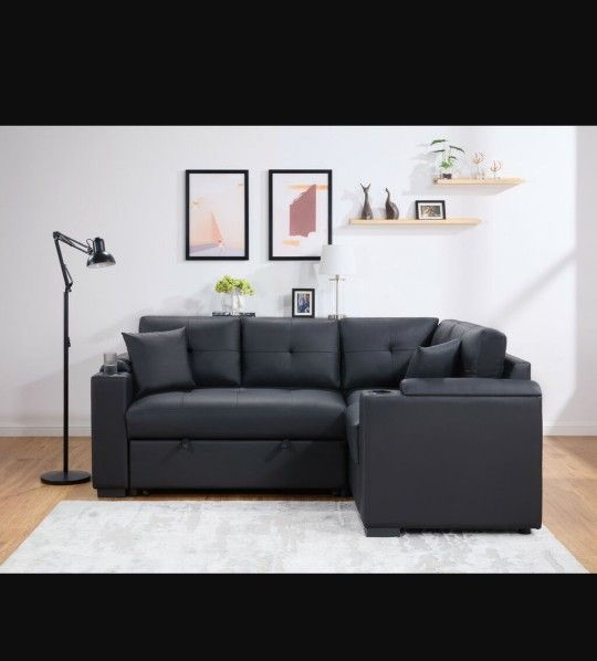 Black Fabric Sleeper Sectional Sofa Witj USB Outlet