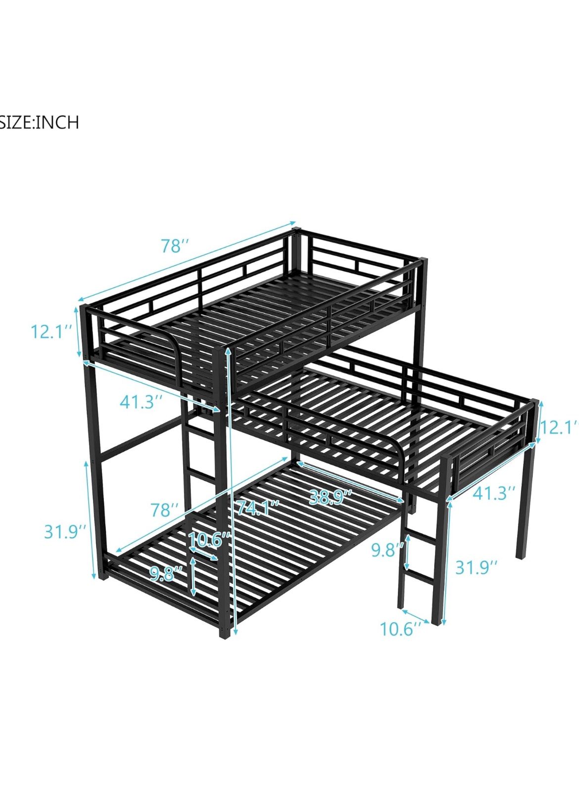 SOFTSEA Metal L-Shaped Triple Bunk Bed for 3