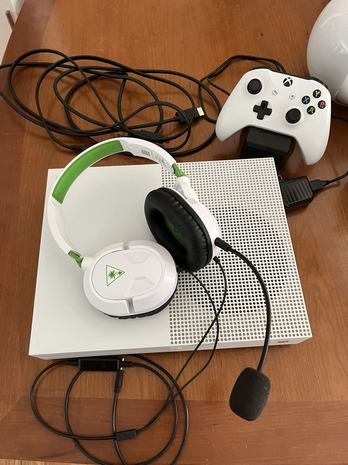 Includes controller with charger, headphones with microphone, and HDMI cables