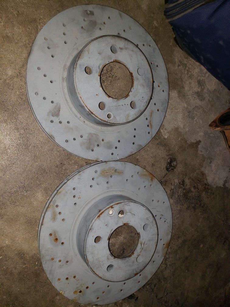 Have a pair of w220 oem mercedes slotted and vented front rotors. Bought them awhile back thinking they would fit on my w211 but they dont asking $150 for the pair which is really cheap for oem mercedes. Online they are 150+ each Part number is A2/2/0/4/2/1/0/9/1/2