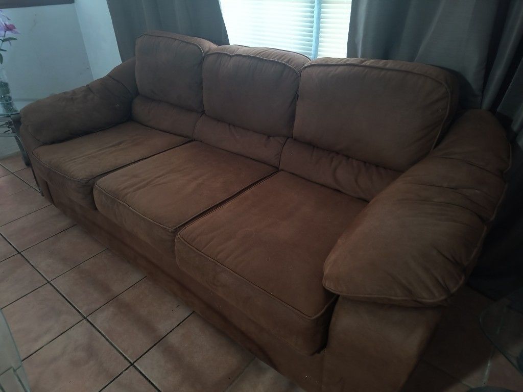 Comfy couch, glass center table and 2 glass side tables for pickup in Brandon fl