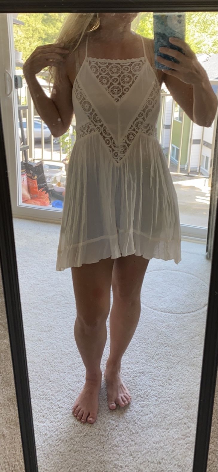Cute off white summer cotton and crochet dress. Pretty short, can also be a tunic top and swimsuit cover up. Free people, spell, gypsy, bohemian style. See my other items, thanks! I’m a size 4, petite 5 ft for reference.