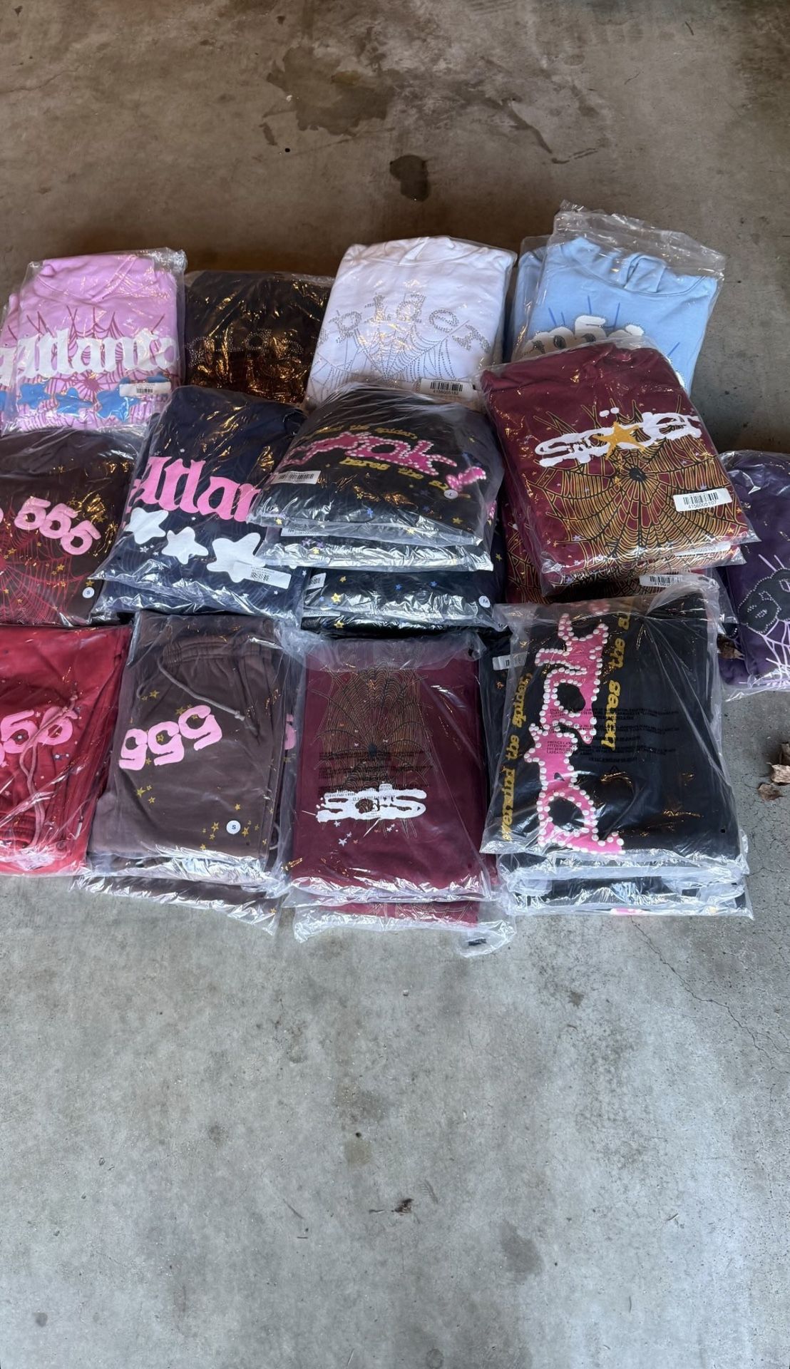 I have all kinds of hoodies like bape essentials, denim tears, pink, spider for amazing prices cheaper if buy in bulk dm for questions or prices.