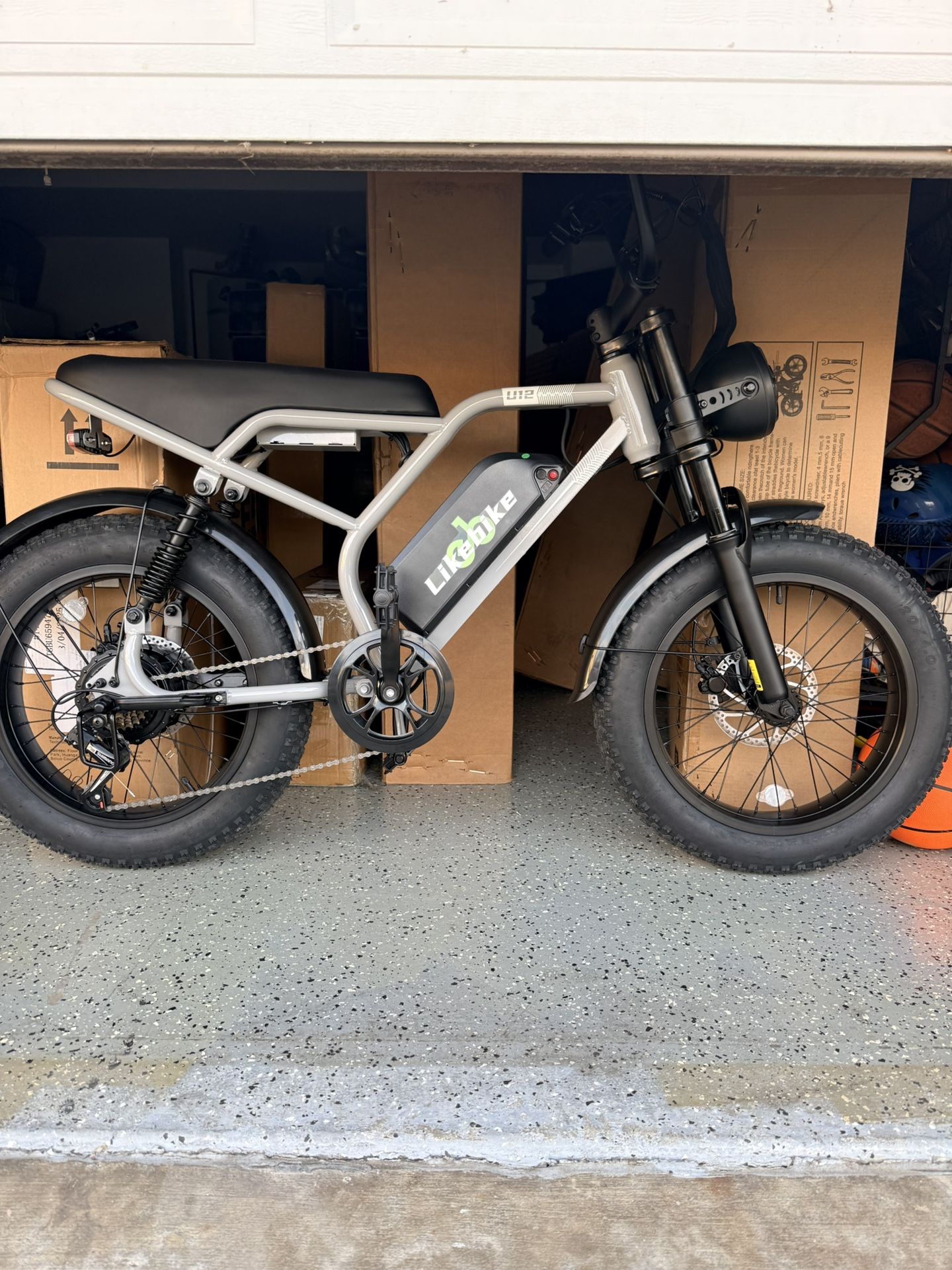 Brand New electric bike 1500 watts 48v 20 ah, up to 28-32 mph unlocked, 70 miles range on full charge, Full suspension Hydraulic brakes, headlight, taillights, turn signals, horn, Bike rides very smooth!! 1 Gray and 1 black color available. The one you get will be new in the box. Come test ride it! $599 Firm price- no tax $95 assembly fee