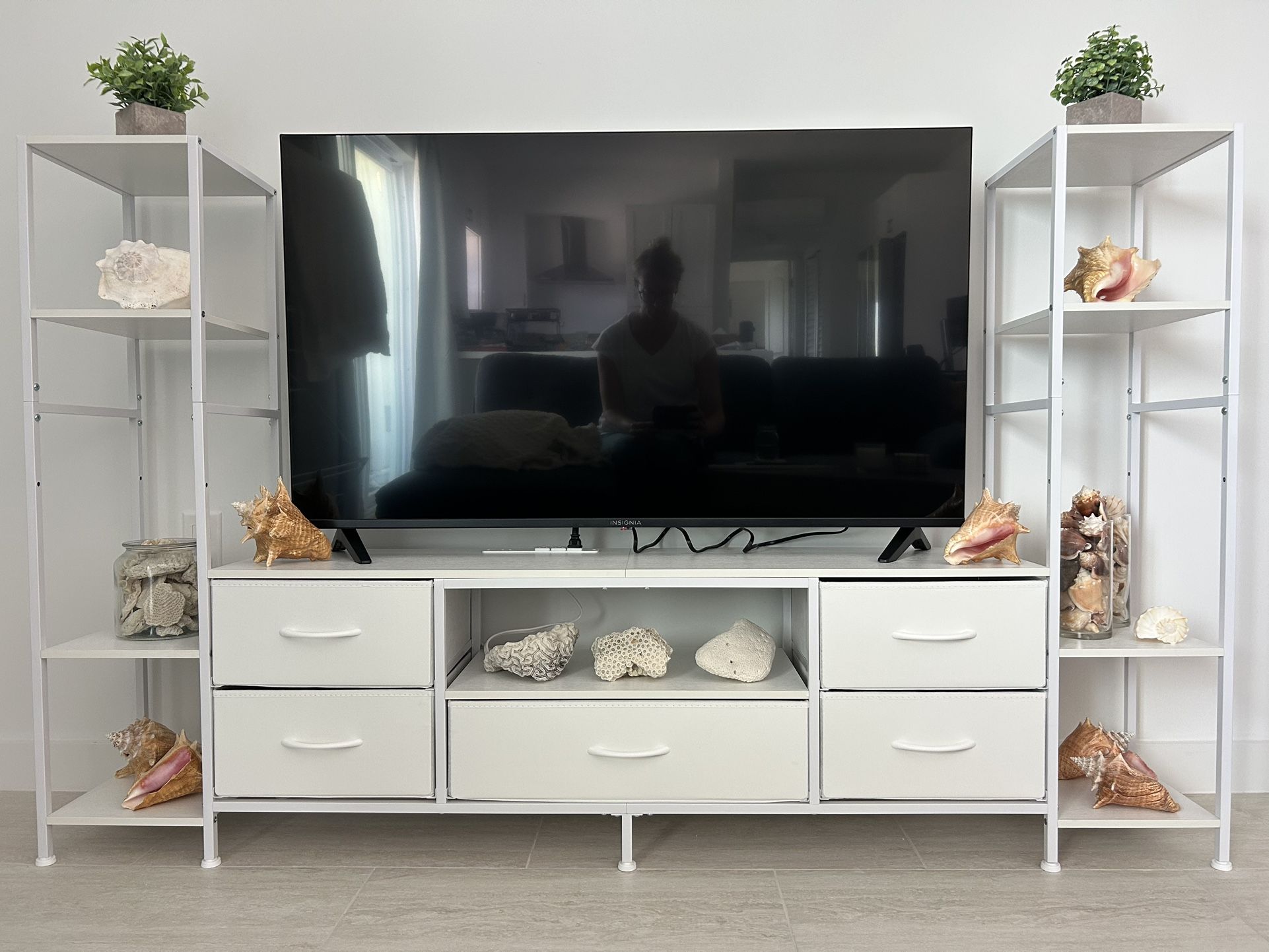 I just bought and fully assembled this TV stand / console from Wayfair a week ago, so it is brand new, but it doesn’t nicely fit in my living room, so I decided to sell it. Since it’s all assembled, it will save you the hassle of putting it together. Also it is lightweight and easy to pick up. My TV is 50” for reference. Description: Modern Tv Console Table With Integrated Charging Station, Tv Stand With 5 Drawers And 7 Open Shelves, Media Console With Smart Led Light Strip Features: Sturdy and Stable: The 4-layer TV stand is made of high-quality MDF and metal frame, which can support a TV for many years. Weight capacity of 220 lbs. Smart Led Light Strip:The media console provides an excellent & immersive viewing or video game experience. The smart Led Strip allows you to choose and customize your atmosphere according to your mood and scene in various display modes. Bigger Storage Space: Unlike the small TV console, the TV stand can provide more storage. It is designed with 5 drawers and 7 open shelves for a blend of open and closed storage. Integrated Charging Station: The mordern TV console table is equipped with several outlets, Type-C port and USB port,allowing you to charge multiple devices conveniently without the hassle of extra cords.
