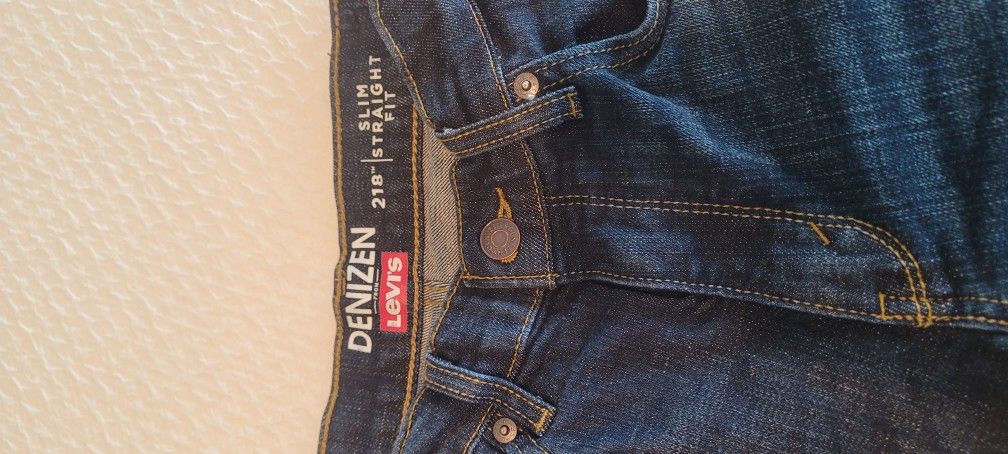 The jeans are made by levi's, Size 14 regular, Slim straight fit.