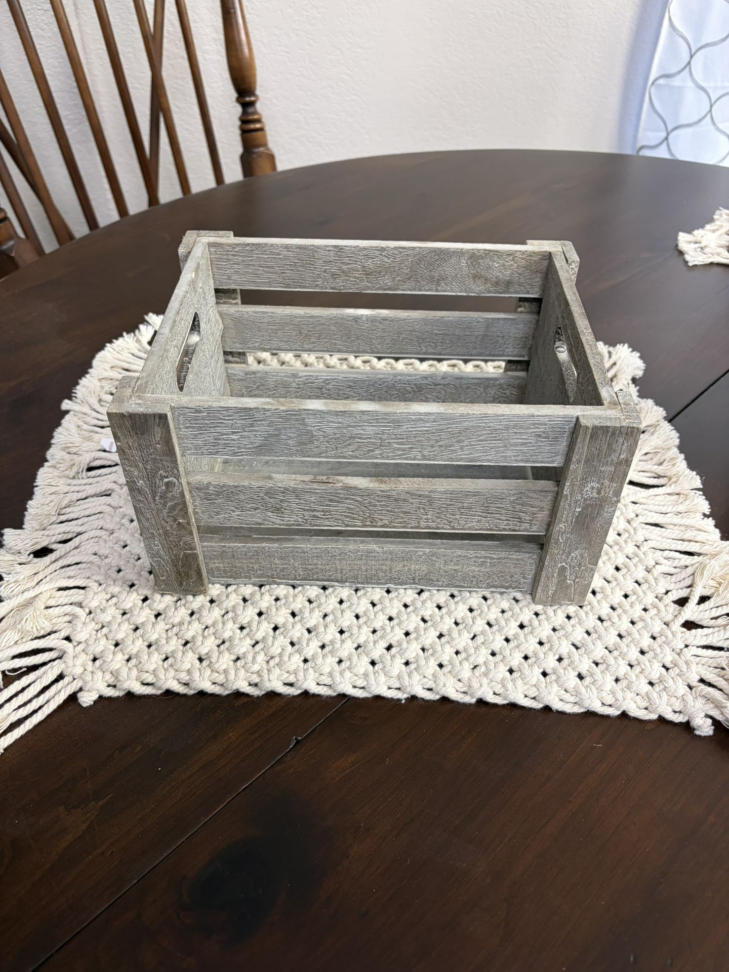 Rustic Farmhouse Style Wooden Crate with integrated Side Handles - weathered gray-wash finish