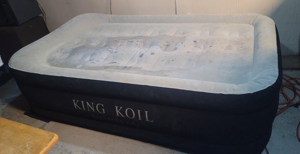 King Koil Size Twin XL automatic blow up bed. Works really good. Had a slight tear in it and I patched it up. Also has a water stain on top which is dried out. But people put sheets over beds. This bed is 20 inchs high. selling for $29.99 Only serious buyers. If your really seriously interested please Message me. This is pick up only Cash upon pick up. I don't drive I live in pocono Summit Pennsylvania. Thank you