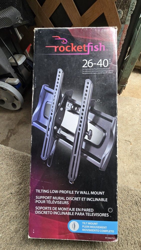 Tilting low profile tv wall mount fits 26-40 inch tvs and 80 pound tv. Box is worn out but everything is still in its package. Never got installed. $20 obo.
